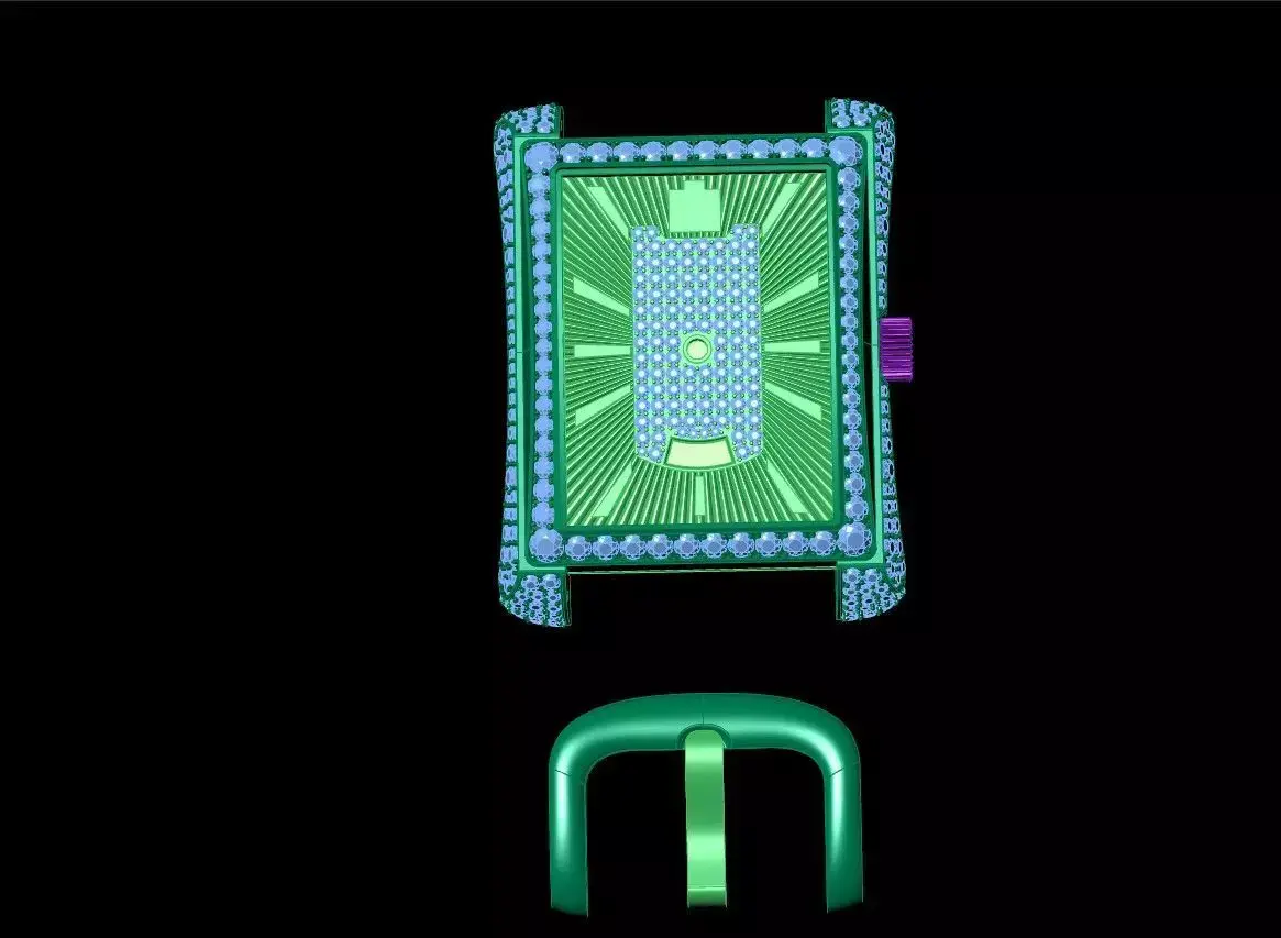 Step into a realm of refined opulence with the Emerald Majesty – The Royal Timepiece. This exquisite rectangular watch case embodies a fusion of classic artistry and modern grandeur. Crafted in radiant gold and meticulously adorned with lustrous green gemstones, every detail reflects an aura of prestige and timeless beauty.