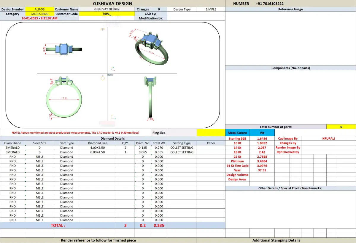 This CAD model is production-ready and optimized for professional jewelry manufacturing workflows including casting, stone setting, polishing, and resizing. Clean geometry allows efficient customization for various stone dimensions or metal choices.