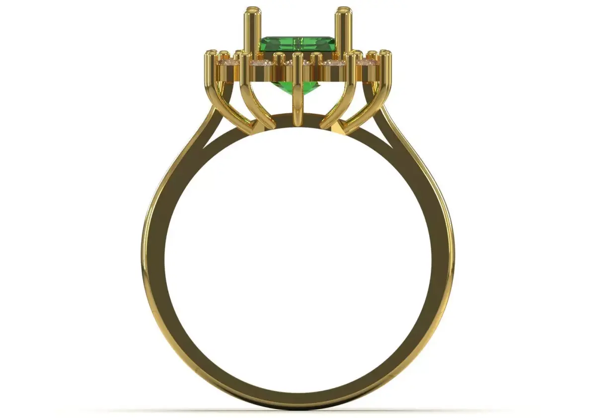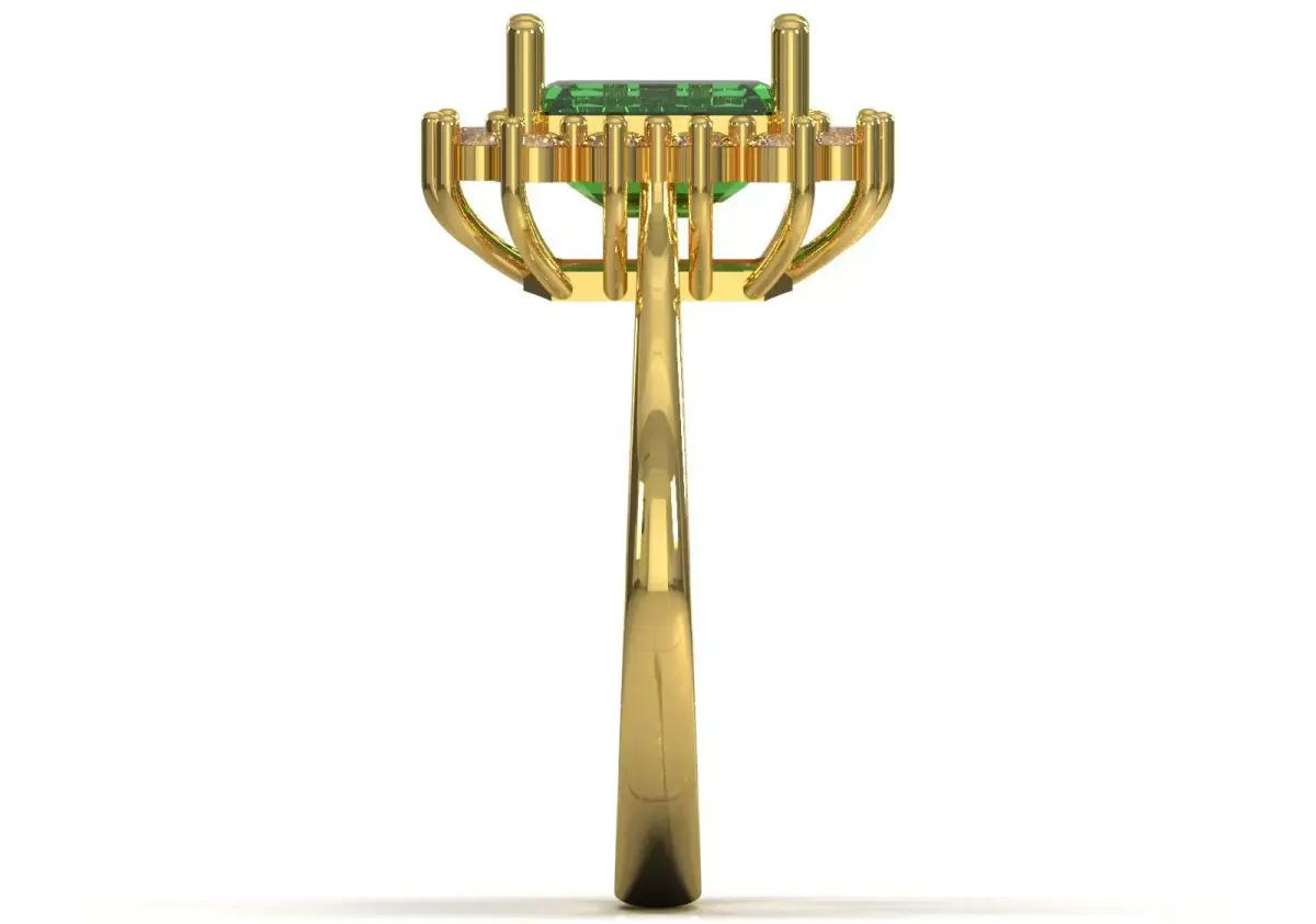 The JR00275 ring, with its cut green stone, sparkling halo and bold gold structure, is a symbol of wealth, classic beauty, dignity and the energy of nature. This is a Cocktail/Special Occasion Ring that is ideal for formal occasions, celebrations and a luxurious and lasting gift due to its outstanding design and powerful color.
