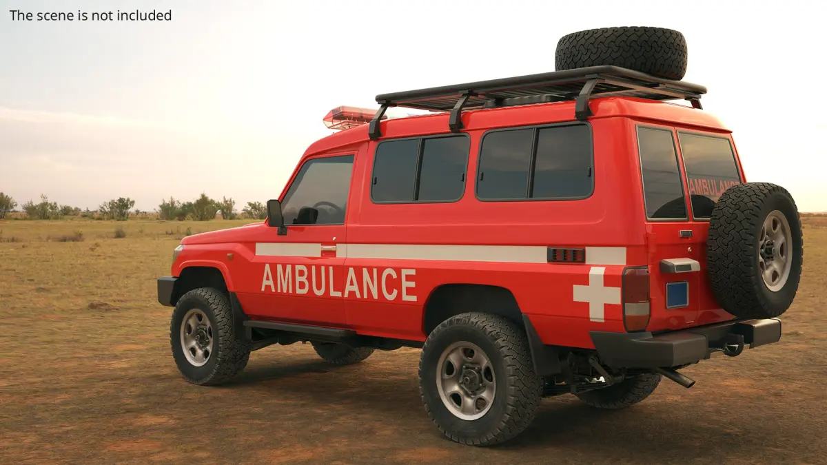 Emergency Ambulance Off Road Vehicle Red Rigged for Maya is a three-dimensional model of rugged emergency response automobile designed for rapid medical intervention in difficult environments.