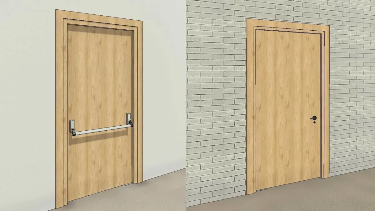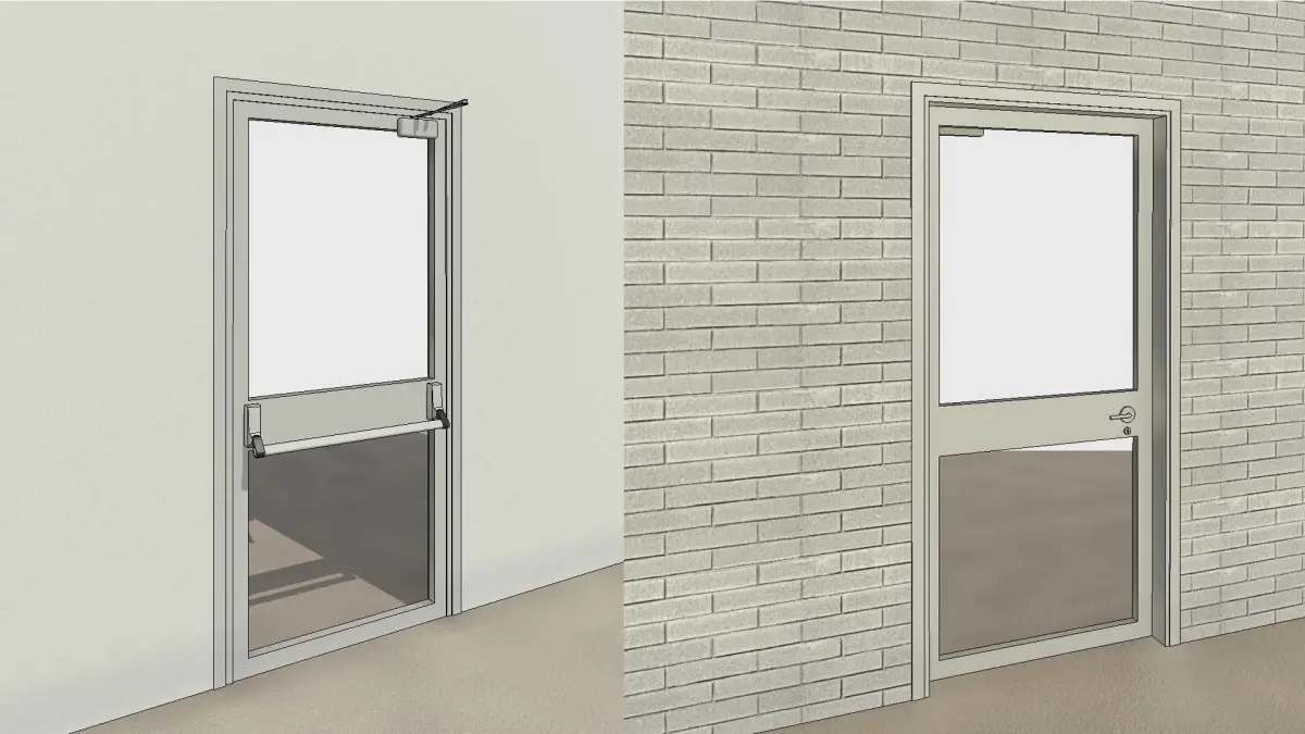 This is a Revit Family model for a fully parametric Emergency Exit Door. Controlling parameters can create either a wooden or an aluminium door with or without top and bottomo windows.Wide range of parameters to create an variation of an emergency wooden or aluminium internal or external exit door with panic push bar, floor or ceiling springs, top and bottom window.