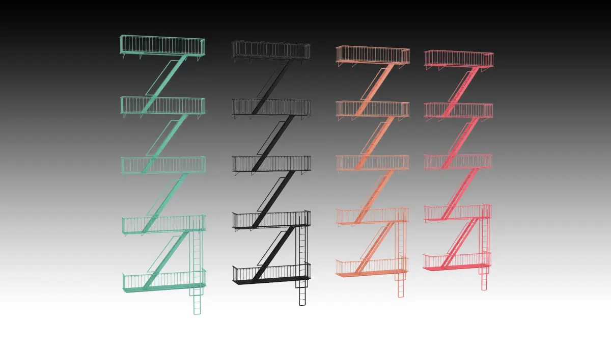 Emergency Fire Escape Stairs 3d modelOriginally created with 3ds Max 2015 and rendered in V-Ray 3.0
