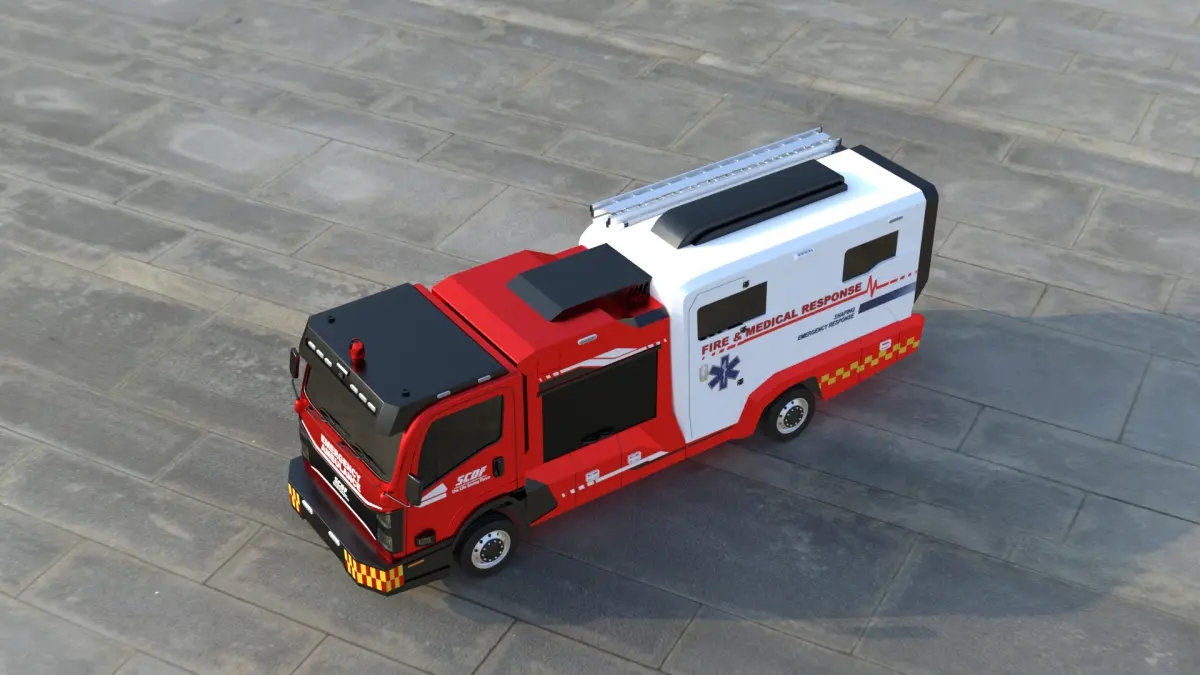 High-Quality Emergency Response Firefighting and Medical Rescue Trucks 3D Model This detailed high-poly PBR fire truck is ideal for real-time applications like Unity, Unreal Engine, AR/VR, and game development. It includes a simplified interior and is fully textured with optimized UVs and realistic proportions.