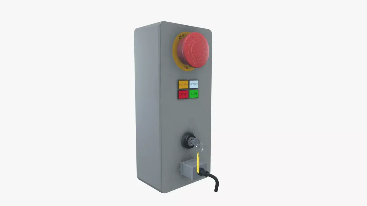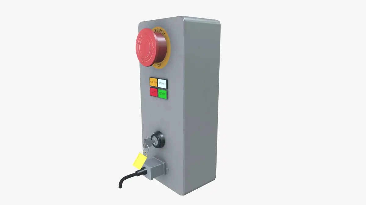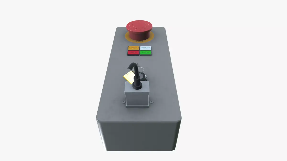 - This 3D model showcases a robust control panel featuring a prominent red button, symbolizing immediate action and emergency response.