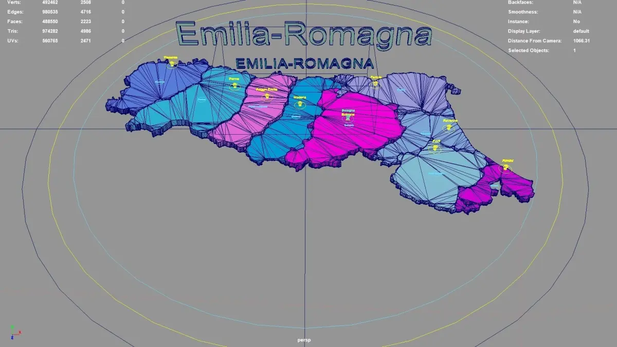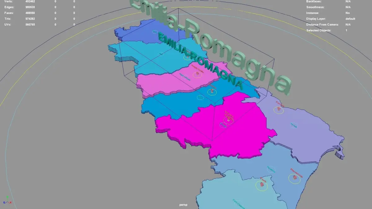 Emilia-Romagna regions : The model is divided according to the administrative region of Emilia-Romagna. Each region is clearly separated so you can easily isolate it or change the colors. Names are also editable and separate.
