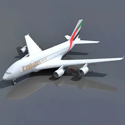 High detailed 3d model of A 380.Textured as Emirates with high-quality jpeg texture (2048 x 2048)Rendered with Vray.Vray settings included in .max version only.HDRI Map not included