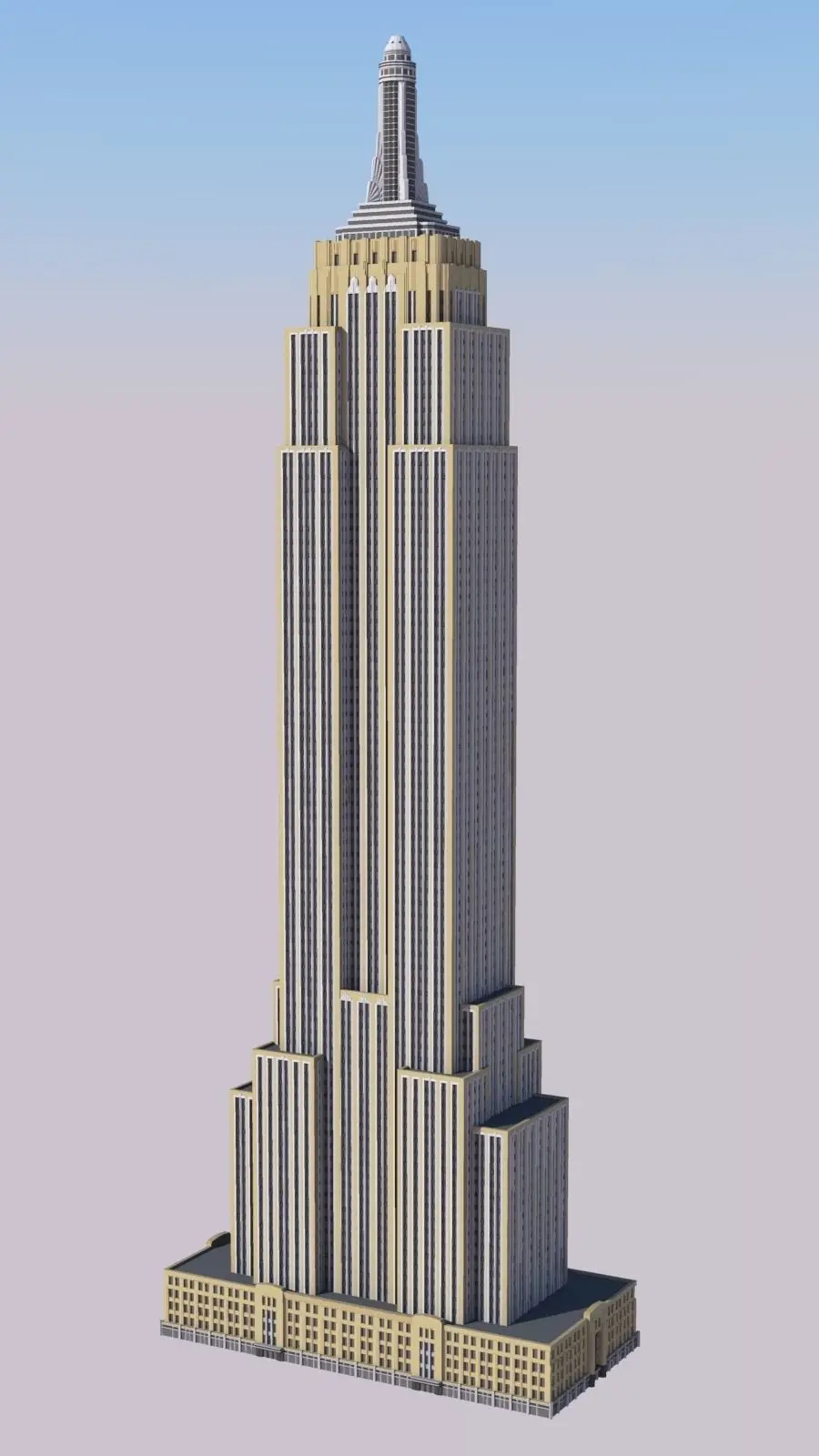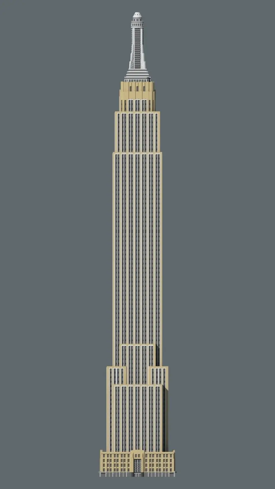 The Empire State Building is a 1250ft (381m) tall skyscraper in New York City. Perhaps the most famous building in the world, the Empire State Building has dominated the New York skyline for nearly 90 years. This building was built in a famous competition with the Chrysler Building to construct the tallest building in the world. The building was designed by Shreve, Lamb and Harmon and completed in 1931. From that year it stood as the tallest building in the world for 40 years until surpassed by the World Trade Center and later Chicago's Sears Tower. The tower's spire, originally intended to be used as a mooring mast for dirigibles, now shines brightly in multicolored LED lights, high above 5th Avenue.