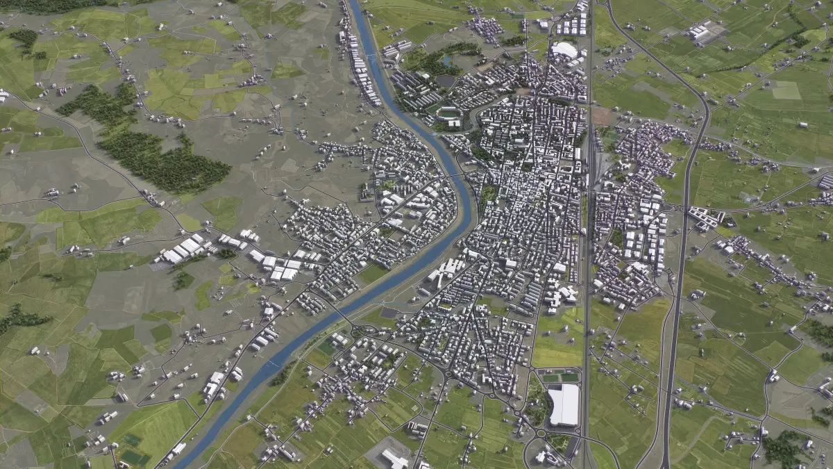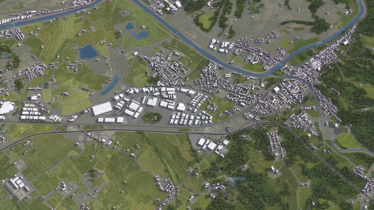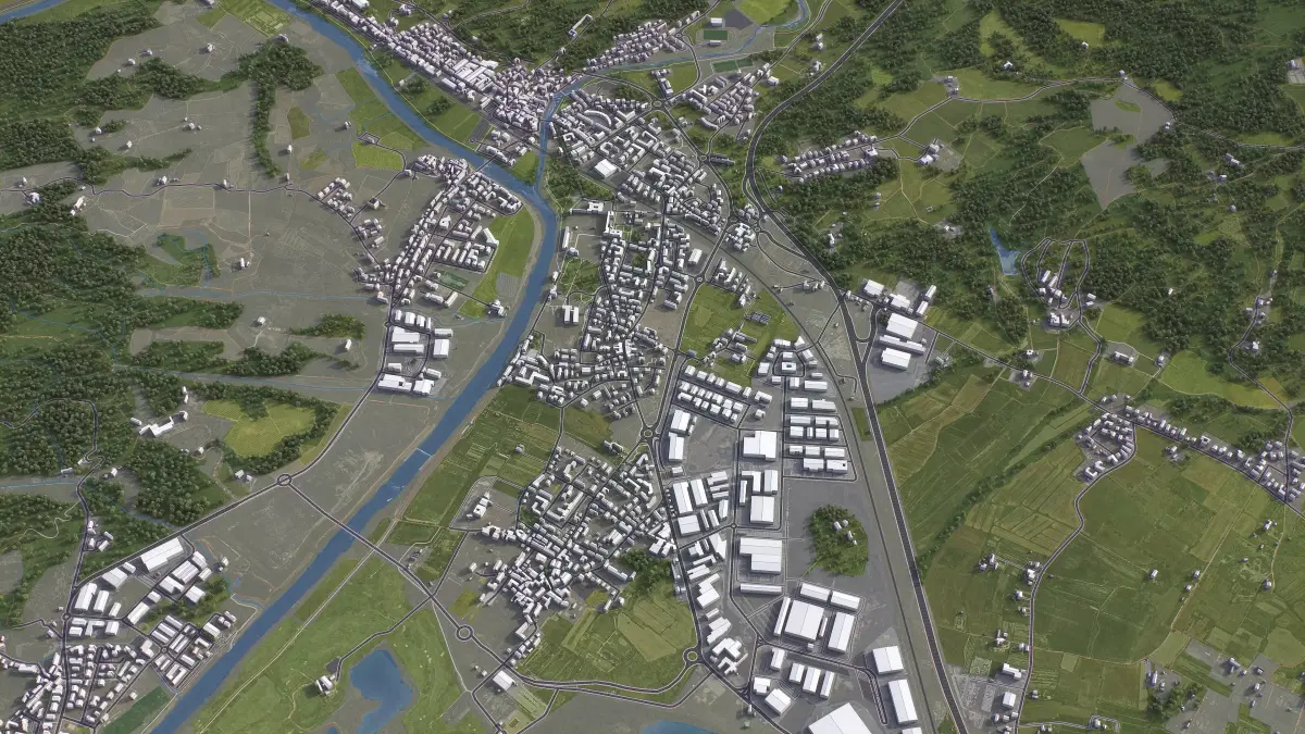 - Integrated Features — Buildings and roads accurately placed on terrain