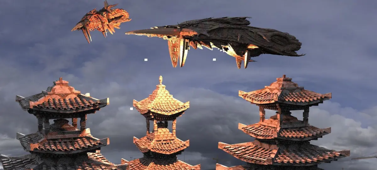 Empress Warlord Temples with Air ships 2 Kitbash! Tiled textures provided!