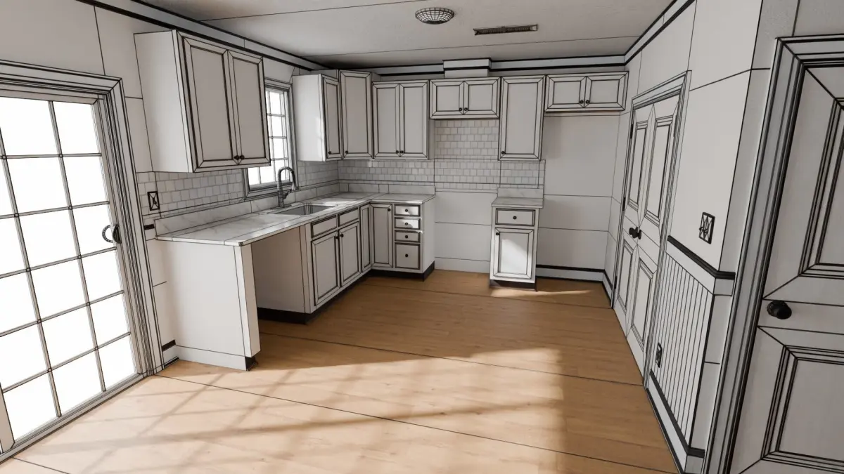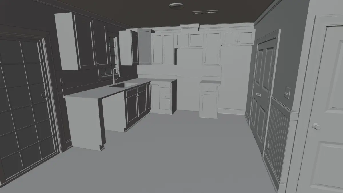 The mesh (Walls, Floors, Ceiling, Baseboards, Doors, Windows, Outlets, Fan, Light Fixture, Kitchen Cabinets, Vents)