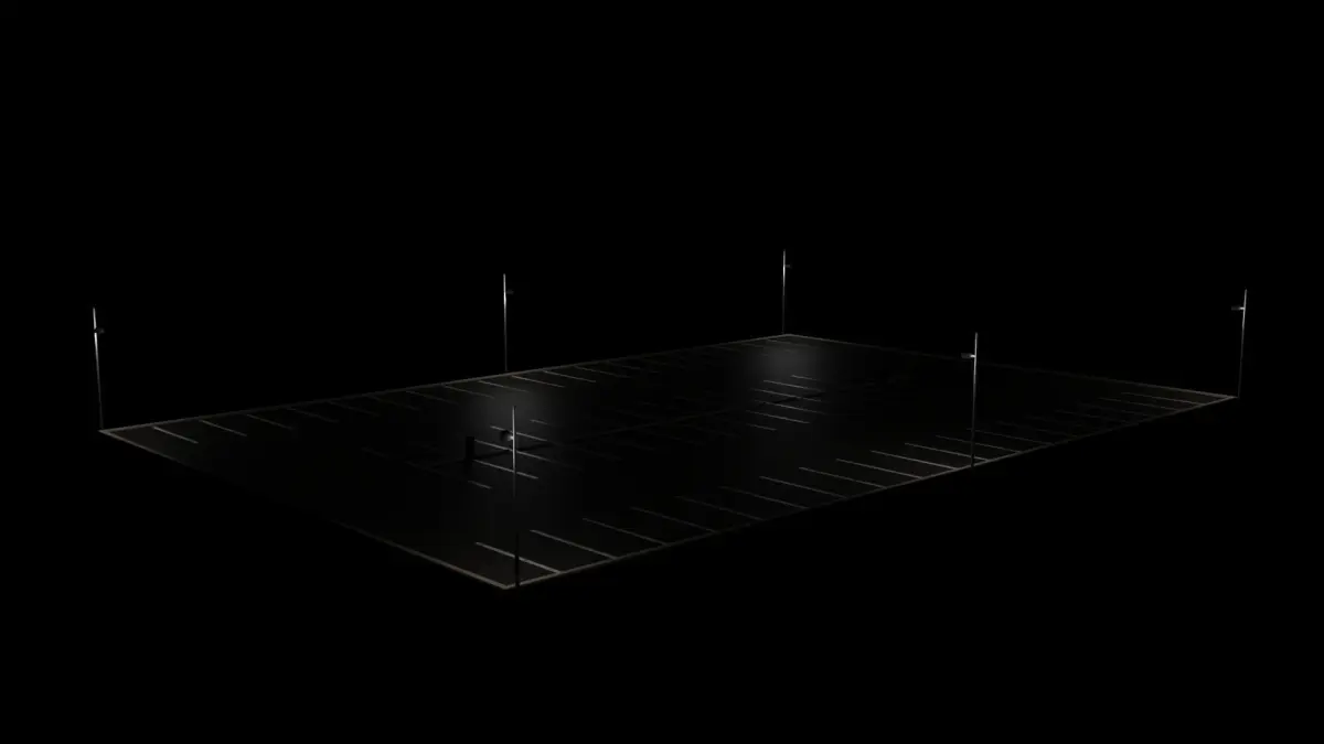 The model has real world scale and measures 33.3 m in depth, 48.6 m in length and 6 m in height.
