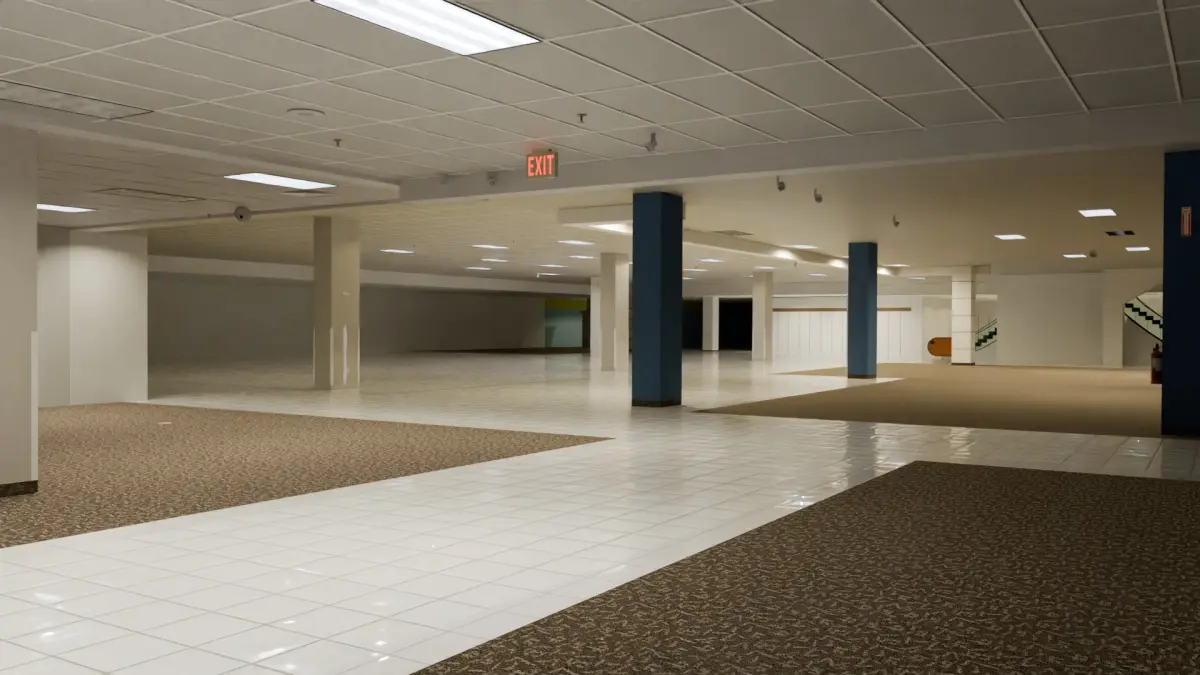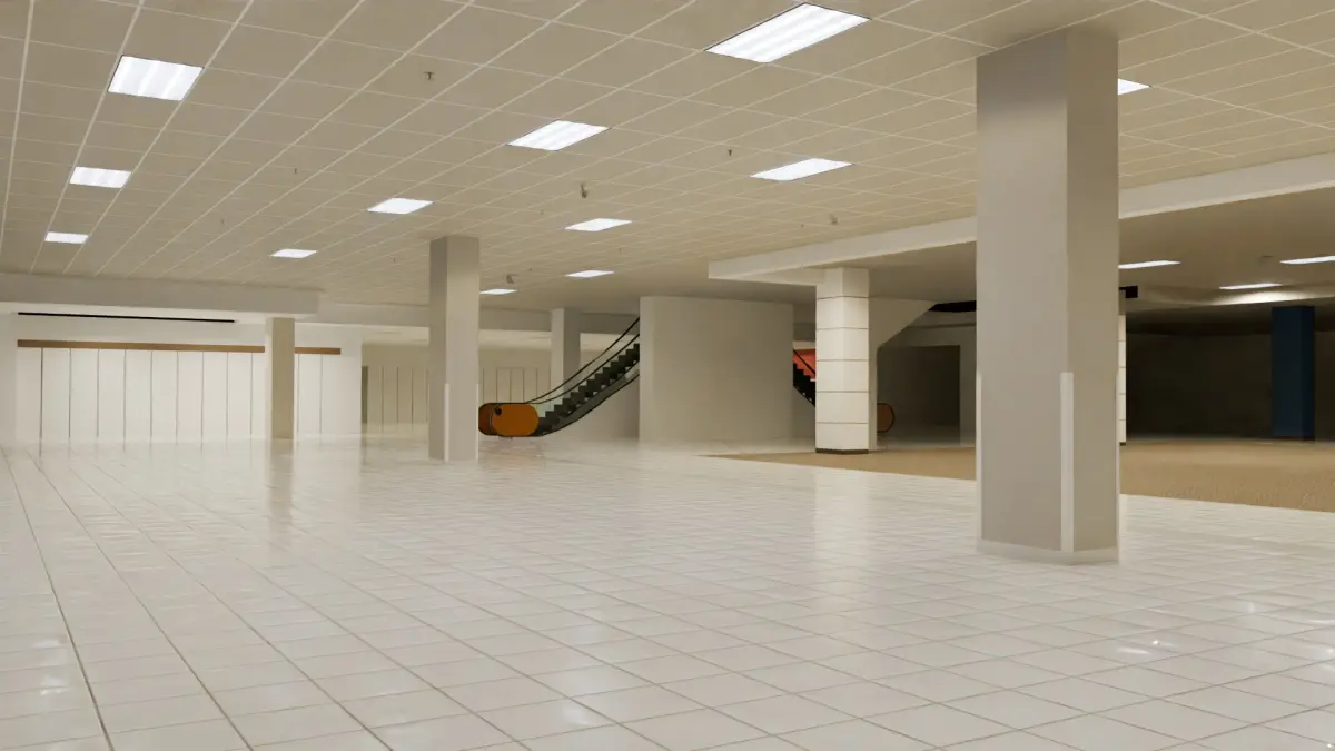 An empty Sears store 3D model, blend file and FBX comes with lighting and textures. Can be used for backrooms games