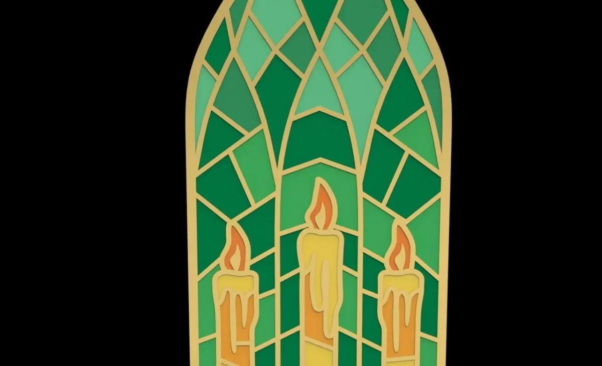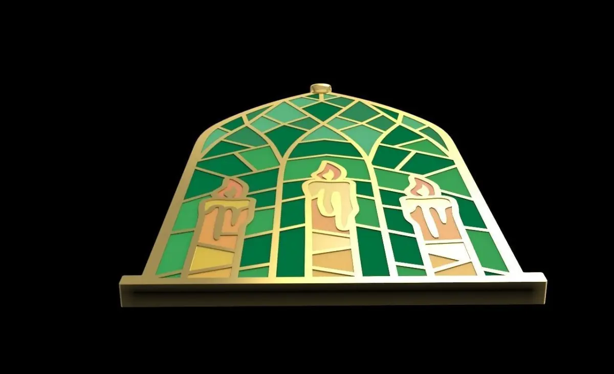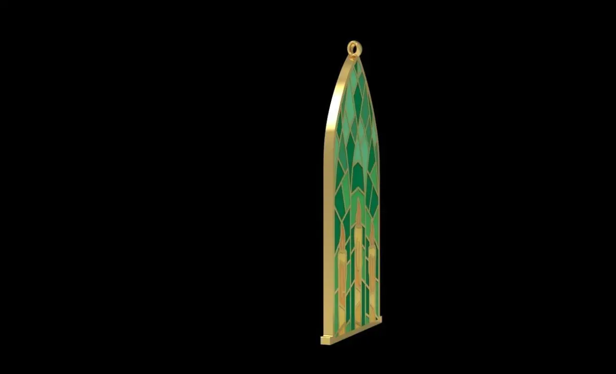 Inspired by a church window with vitrail glasses. By using enamel you could put every colour as you want. The depth of enamel gap is 0.65 m total thickness is 1.3 mm.