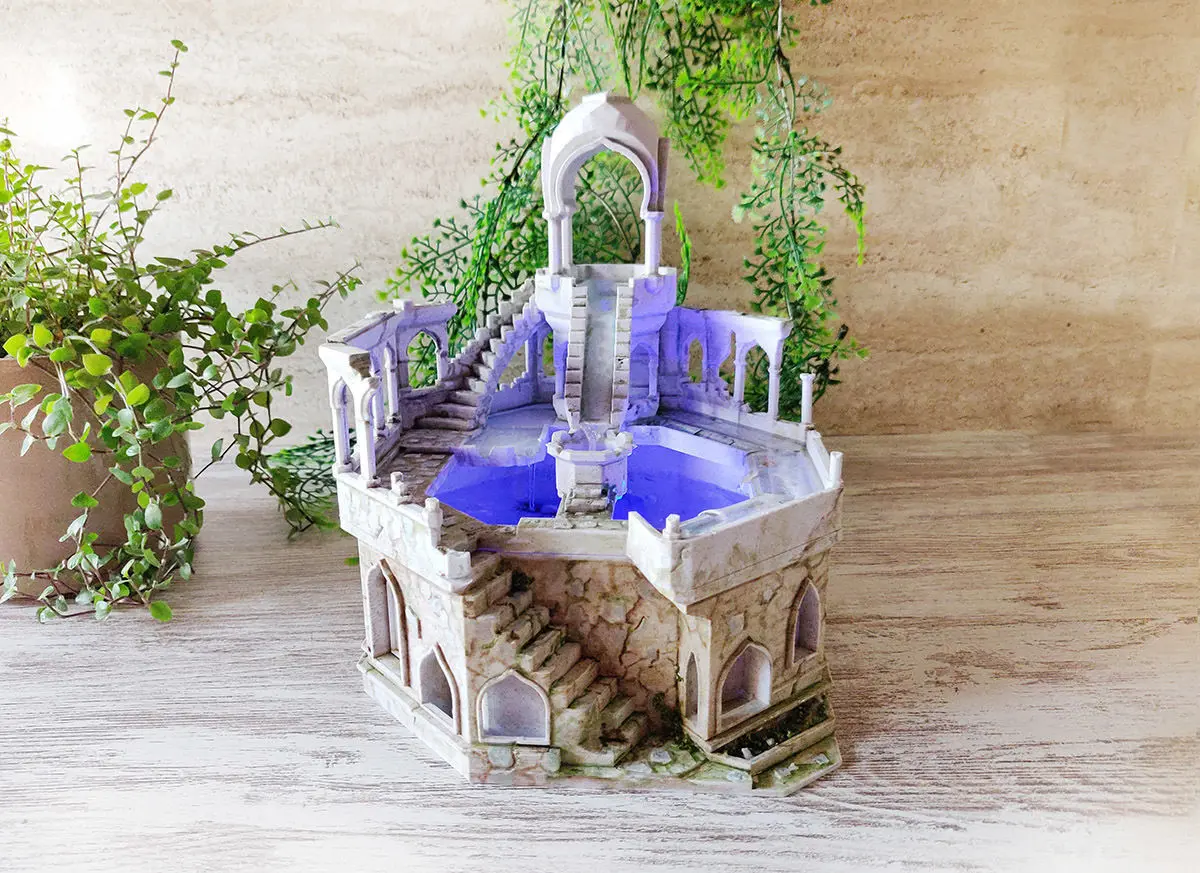 Make an enchanted garden with this design.Or turn it into a magical water fountain. In order for the water to circulate throughout the piece, you will only have to place a small 5-volt water pump.The design consists of two main pieces, they are easy to print and do not need supports.But there is a third piece that you can use if you want to make the garden with lights. Use the third container piece to keep plants and light together.Enjoy painting and decorating it to your liking.