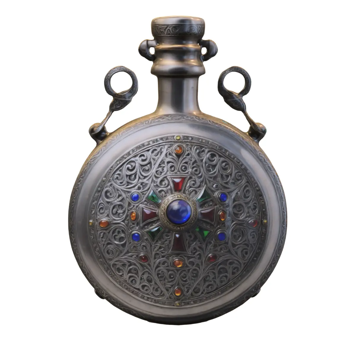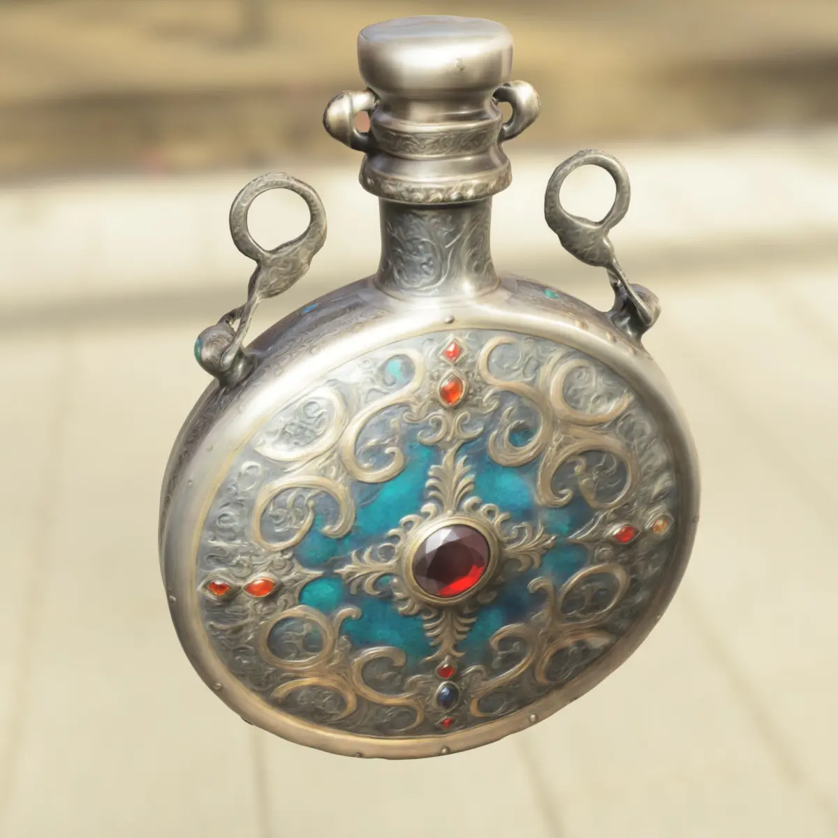 The Enchanted Relic Flask is a highly detailed 3D fantasy potion bottle featuring intricate filigree metalwork, gemstone inlays, and a mystical symmetrical design. Perfect as a magical elixir container, quest item, or mystical relic in RPG, adventure, or fantasy-based games.