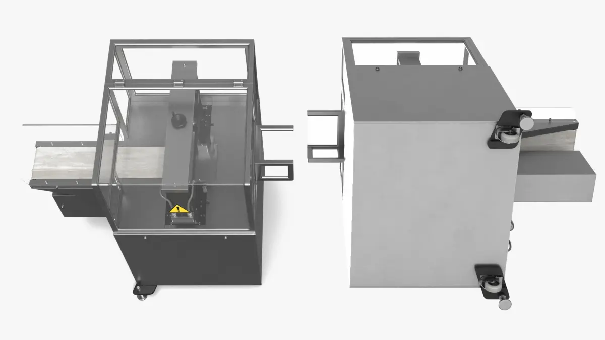 Enclosed Flow Pack Packaging Machine is a 3d model of a conveyor system, which is commonly used in manufacturing and industrial settings for efficient material handling and transportation.