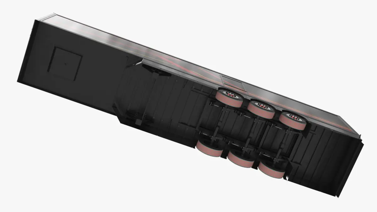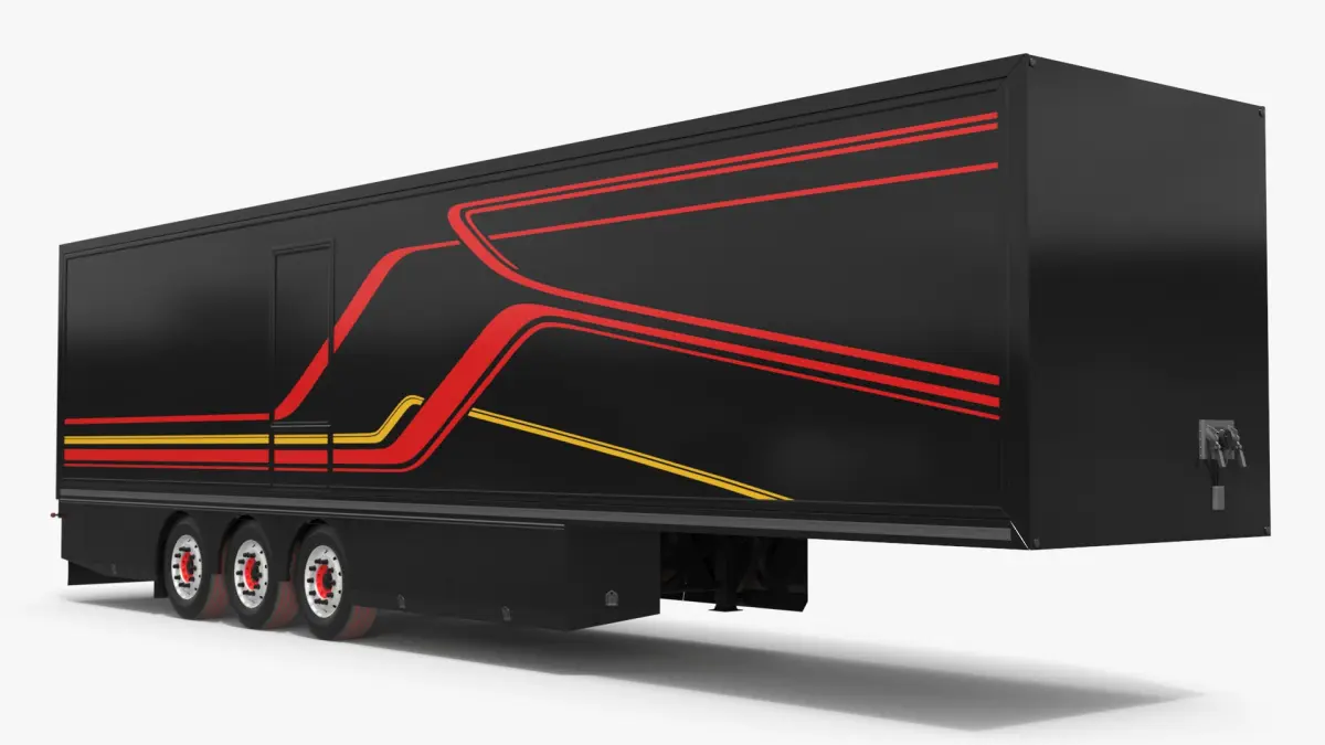 Enclosed Transport Semi-Trailer Black is a three-dimensional model of a specialized freight trailer (semi-trailer) used in commercial road logistics.