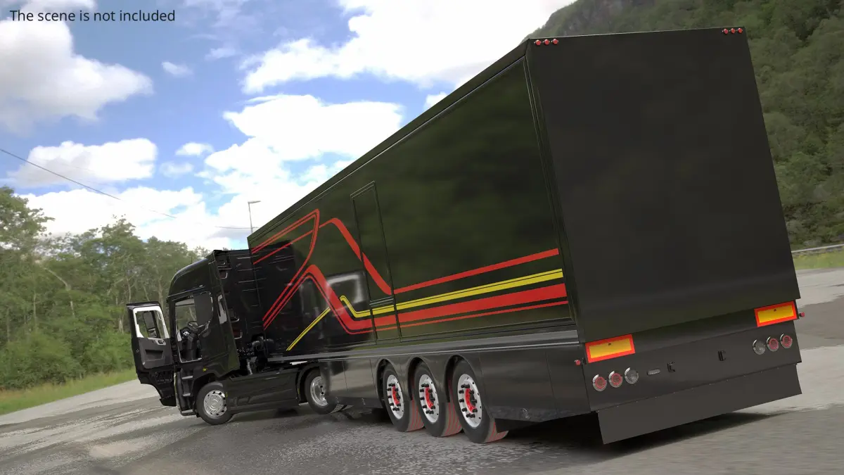 Enclosed Transport Semi-Trailer Black is a high quality, photo real 3d model that will enhance detail and realism to any of your rendering projects. The model has a fully textured, detailed design that allows for close-up renders, and was originally modeled in 3ds Max 2020 and rendered with V-Ray. Renders have no postprocessing!