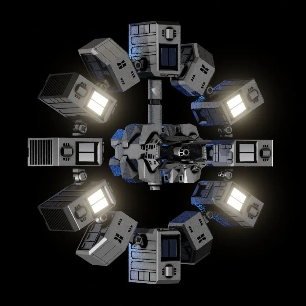 This is a model, made in blender was modeled after the space station Endurance shown in the popular sci-fi movie Interstellar. The model is native to blender and uses blender's native node graphs. There are 3 main models, the main station, the cargo ship, and the exploration pod as shown in the movie.