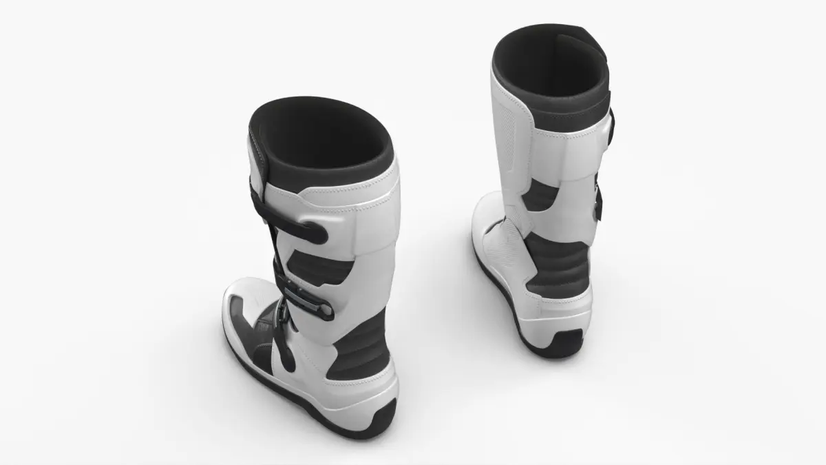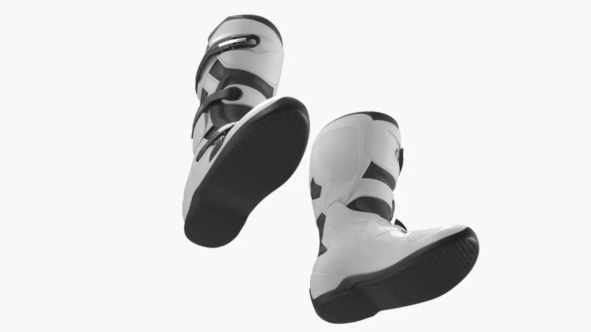 Enduro Motorcycle Boots White Black is a 3d model of protective footwear specifically designed for off-road motorcycling and extreme sports enthusiasts.