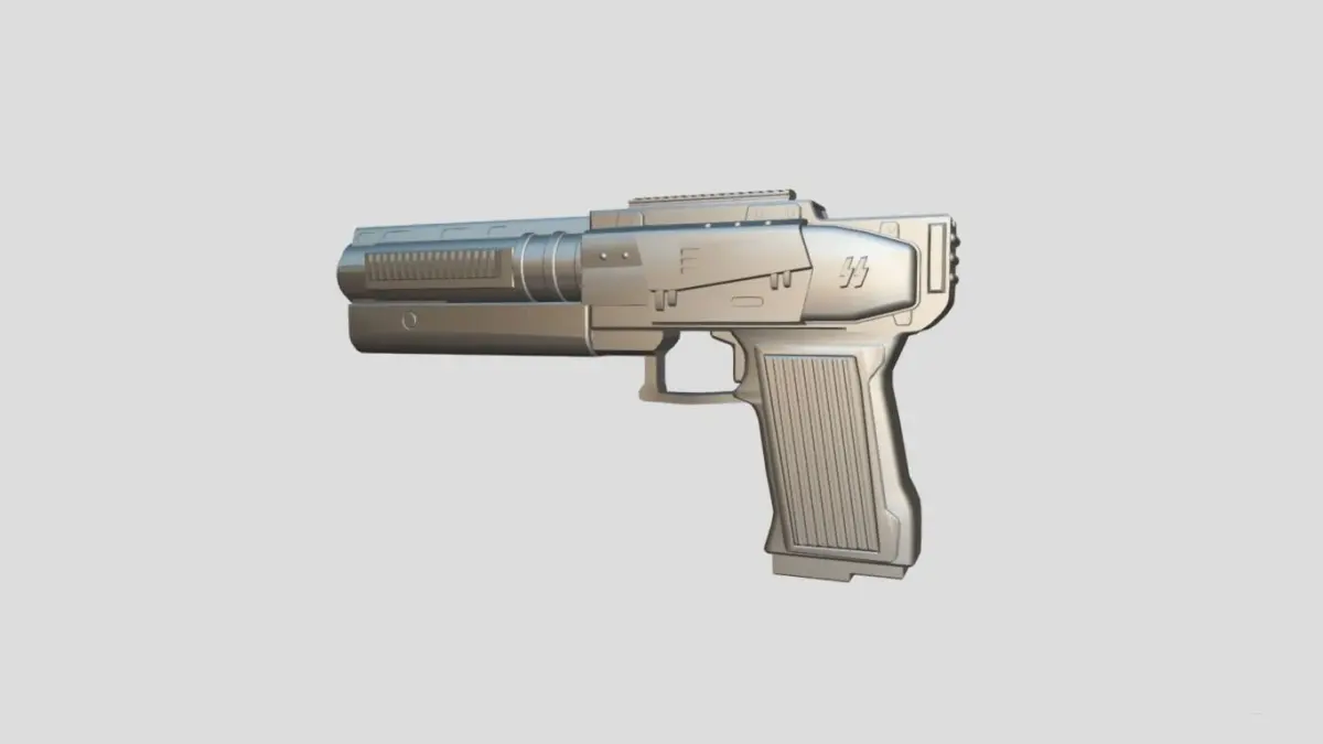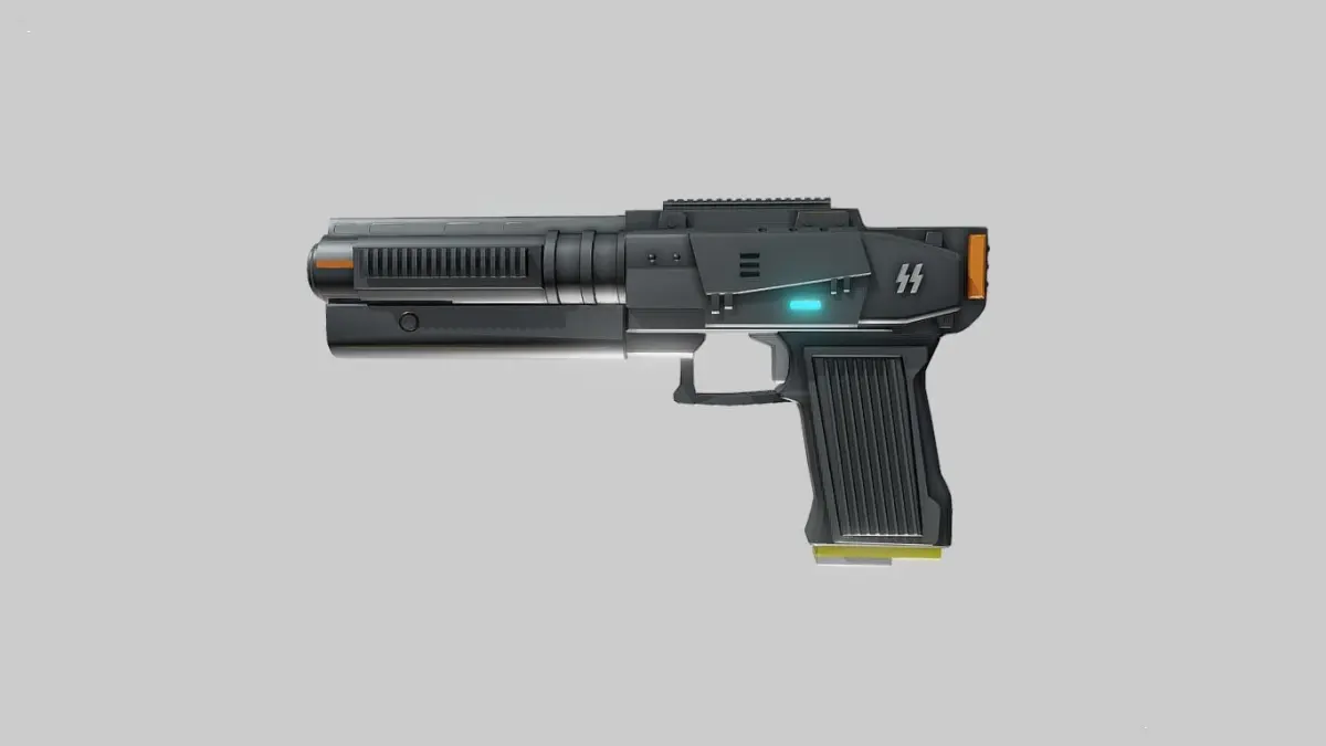 It was inspired by Star Wars blaster pistol design and some bits of Wolfenstein weapon design.