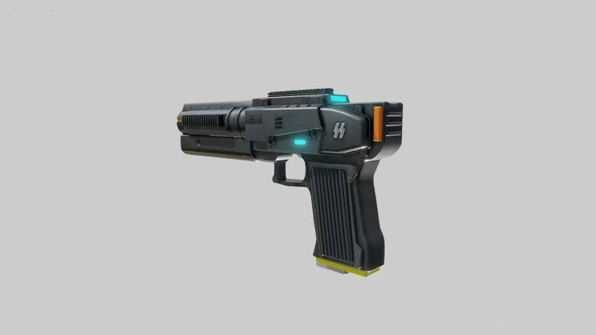 An energy pistol with a mix of Cyberpunk and Dieselpunk style.