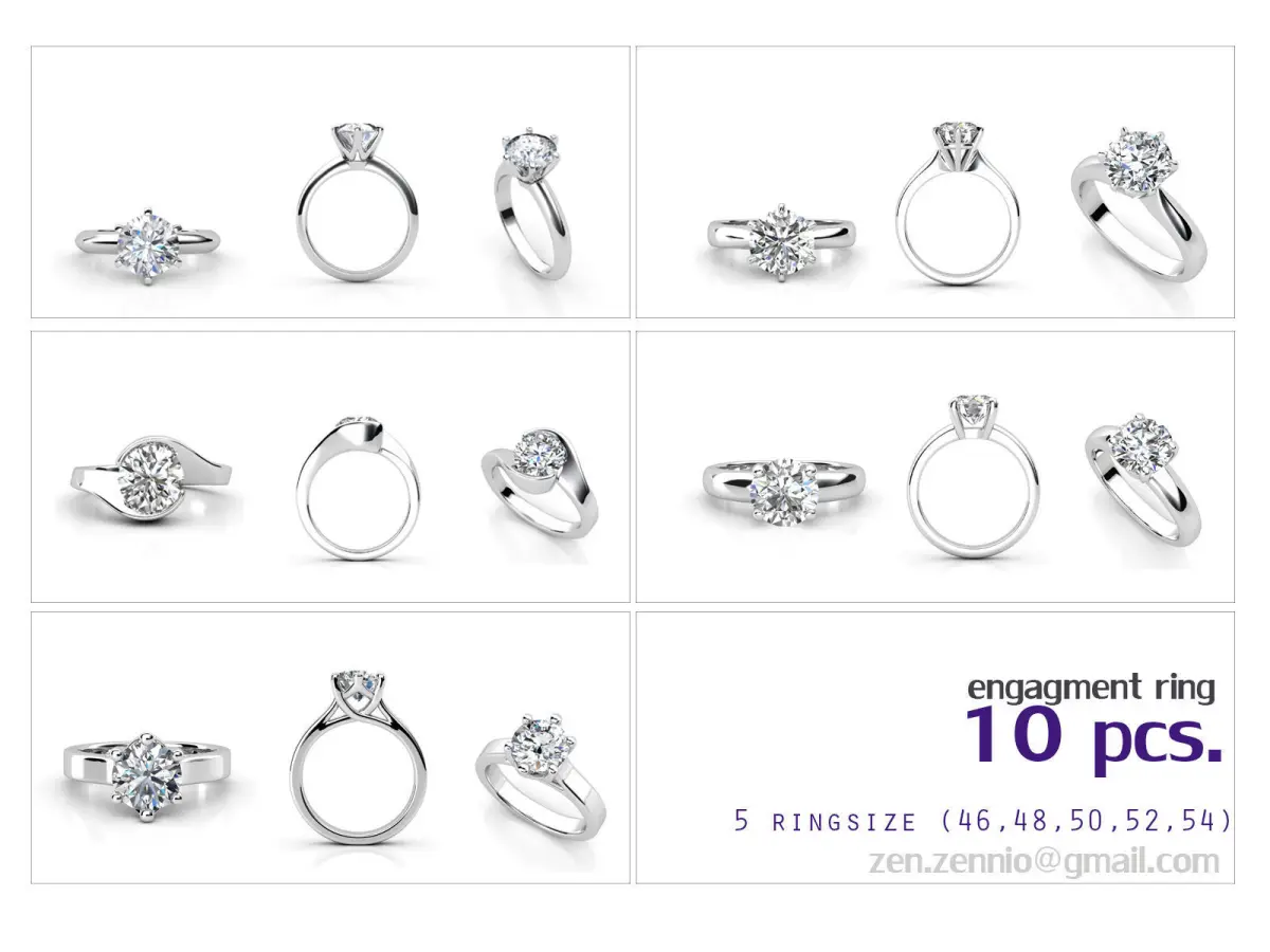 ENGEGEMENT RING COLLECTION 10 PCS. format .3dm ,STL. cadfile 3D print model file ready for 3d printing or CNC. ring size EU 46,48,50,52,54 .STL( 3dm.only#50) include 3renders for 1 item , 5ringsize stl. , sizestone and weight.