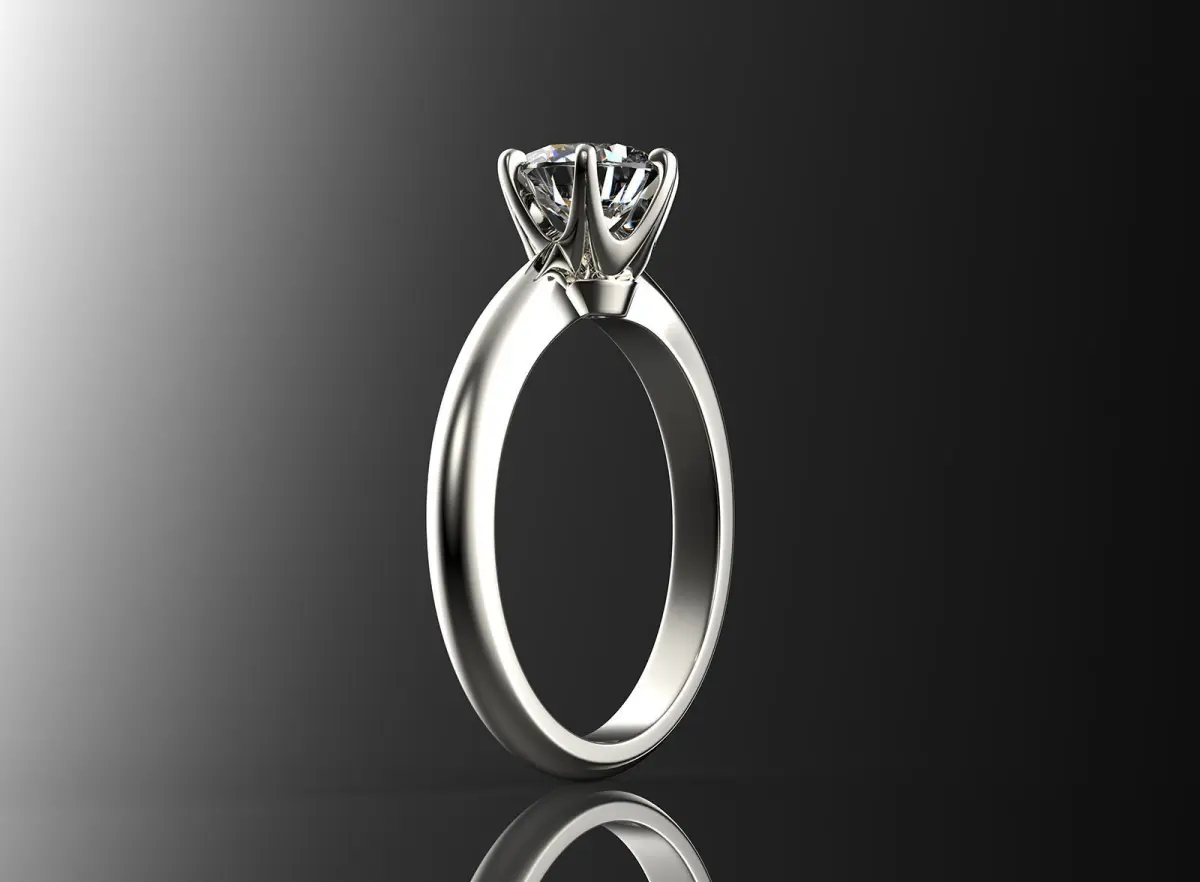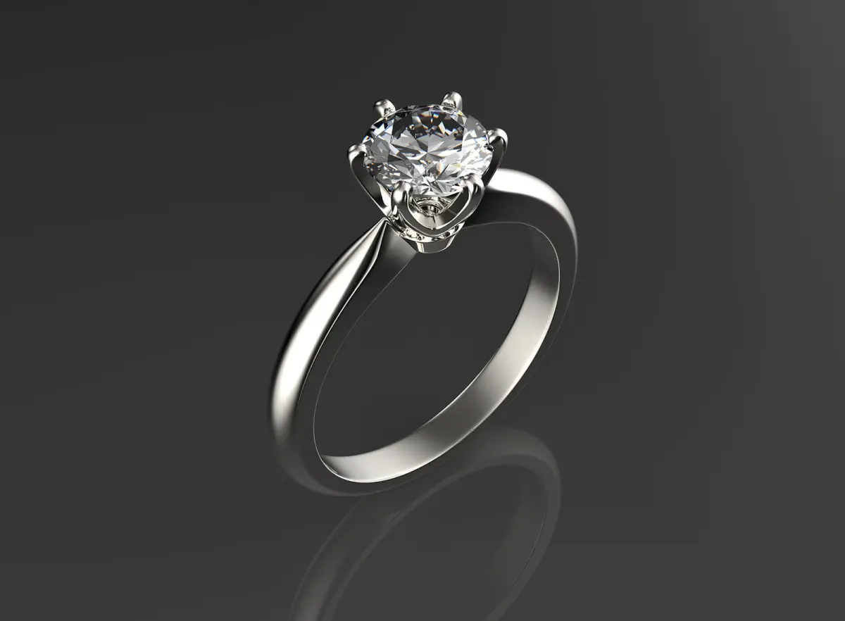 3D model of engagement ring with white gold.