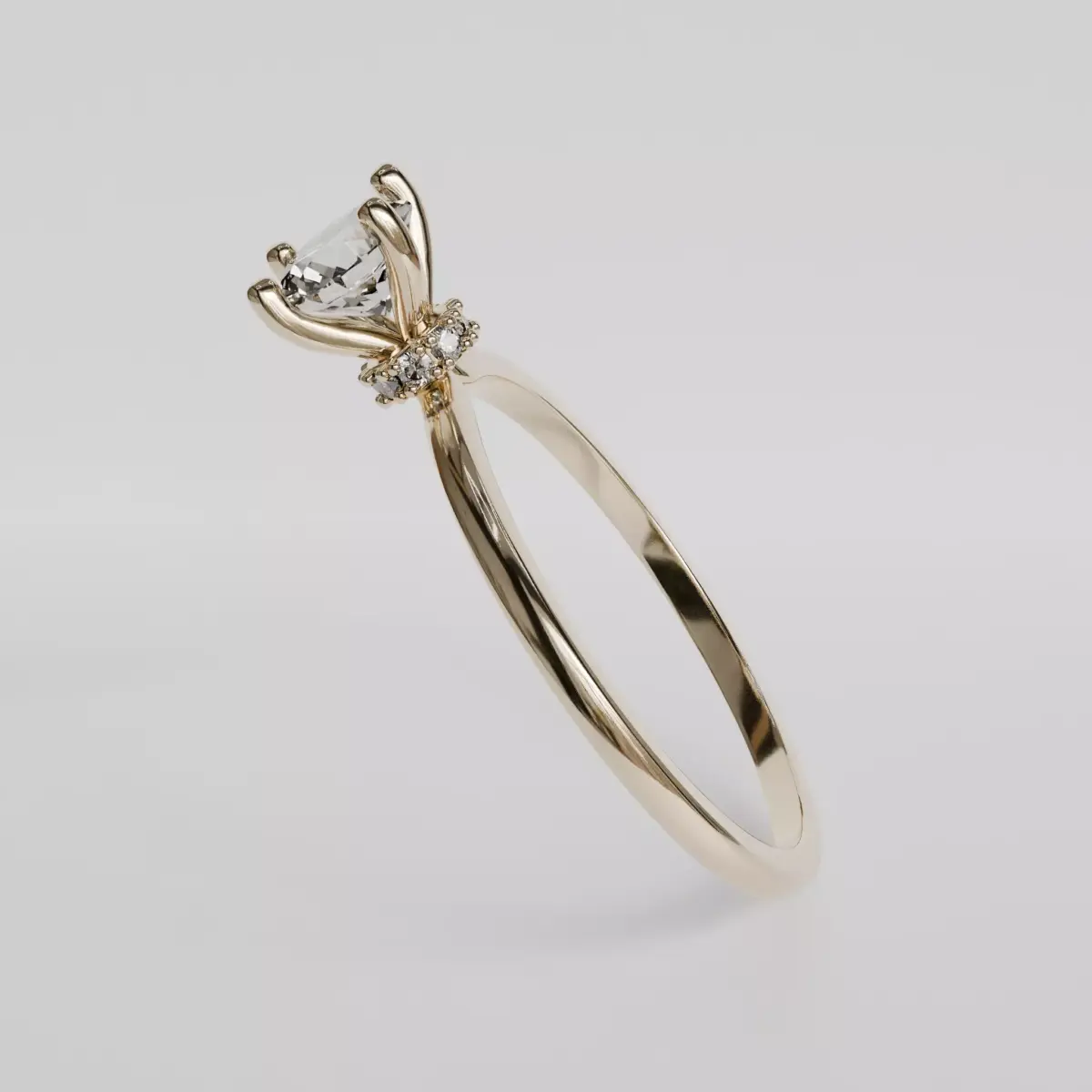 US size 71 zircon or diamond stone, 5 mm in diameter, set with 4 prongs8 inlaid zircons or diamonds, 1 mm in diameter