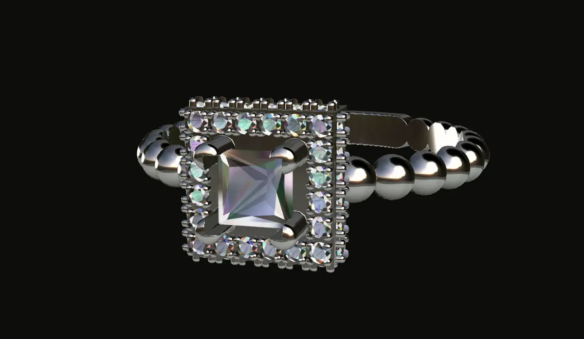 central stone in princess-cut, sides width for gem: 3.5mm
