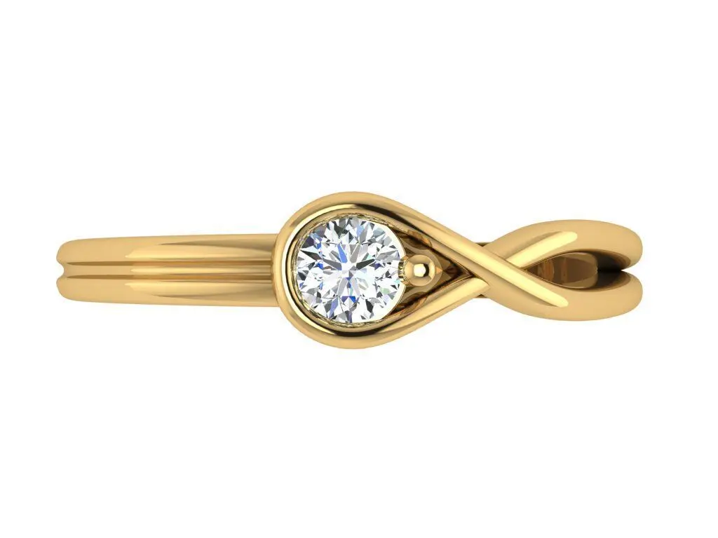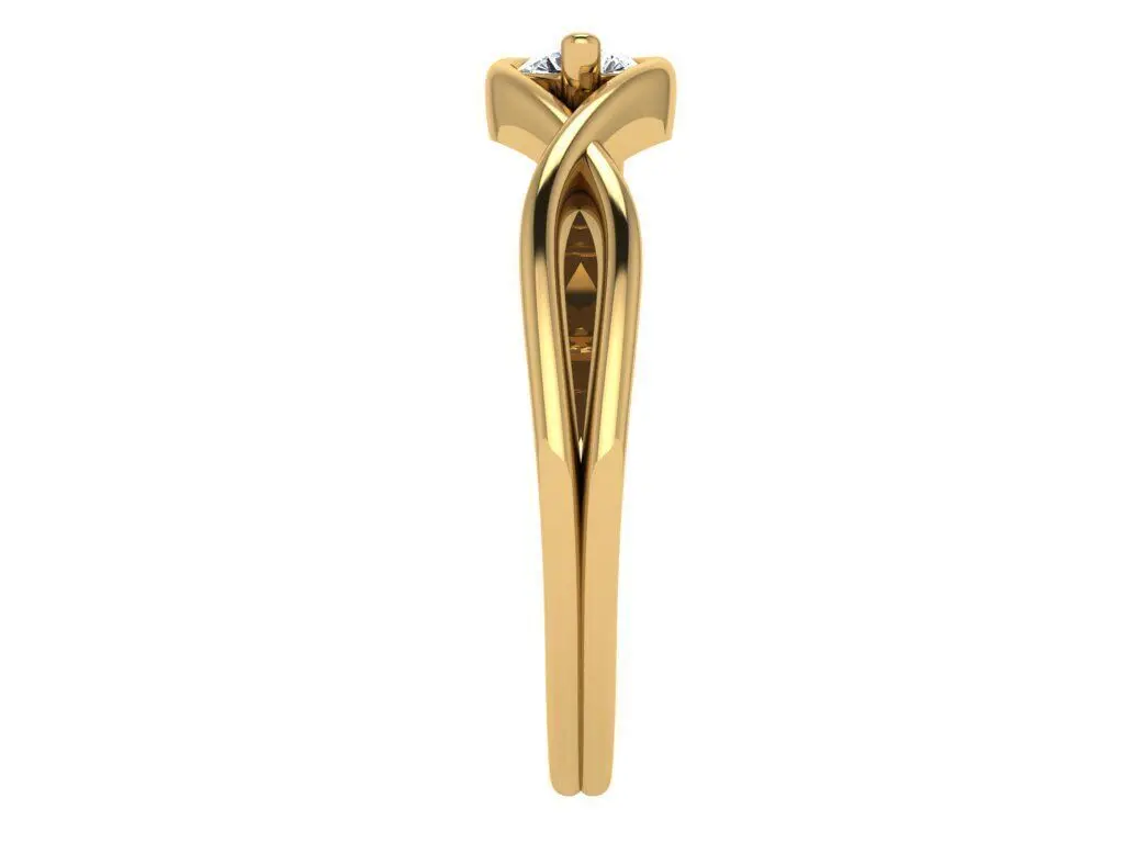 This stunning ring features a crossed band design on one side, adding a touch of contemporary sophistication. A brilliant diamond sits gracefully at its center, catching the light with every movement. The interwoven detail symbolizes unity and connection, making it a meaningful choice for an engagement.