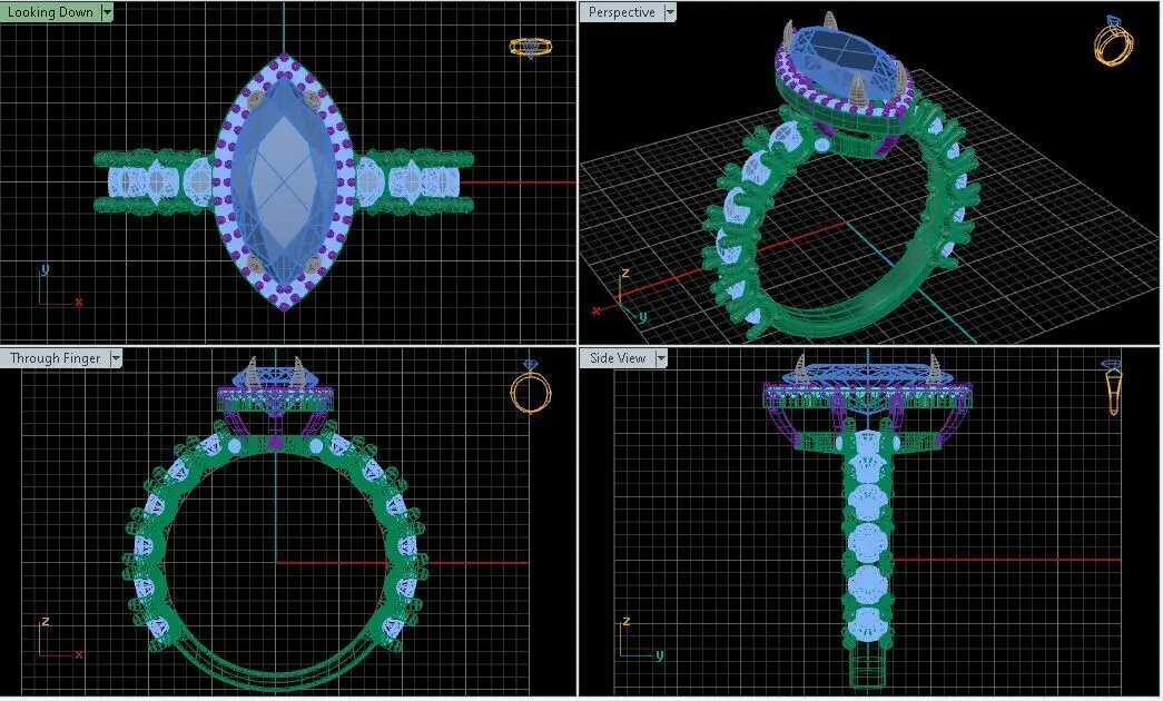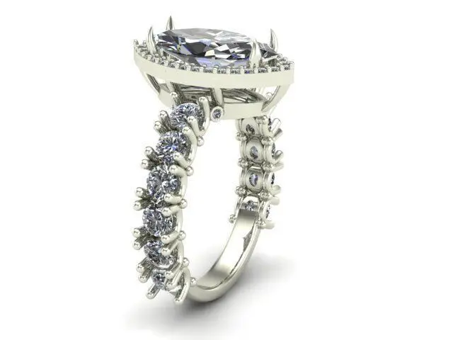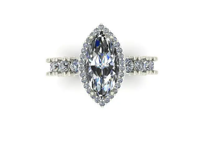 Engagement Ring With Marquise and Rounded Diamonds 3D model