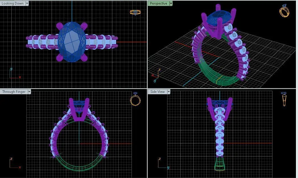 Engagement Ring With Oval Diamond Around It 3D model