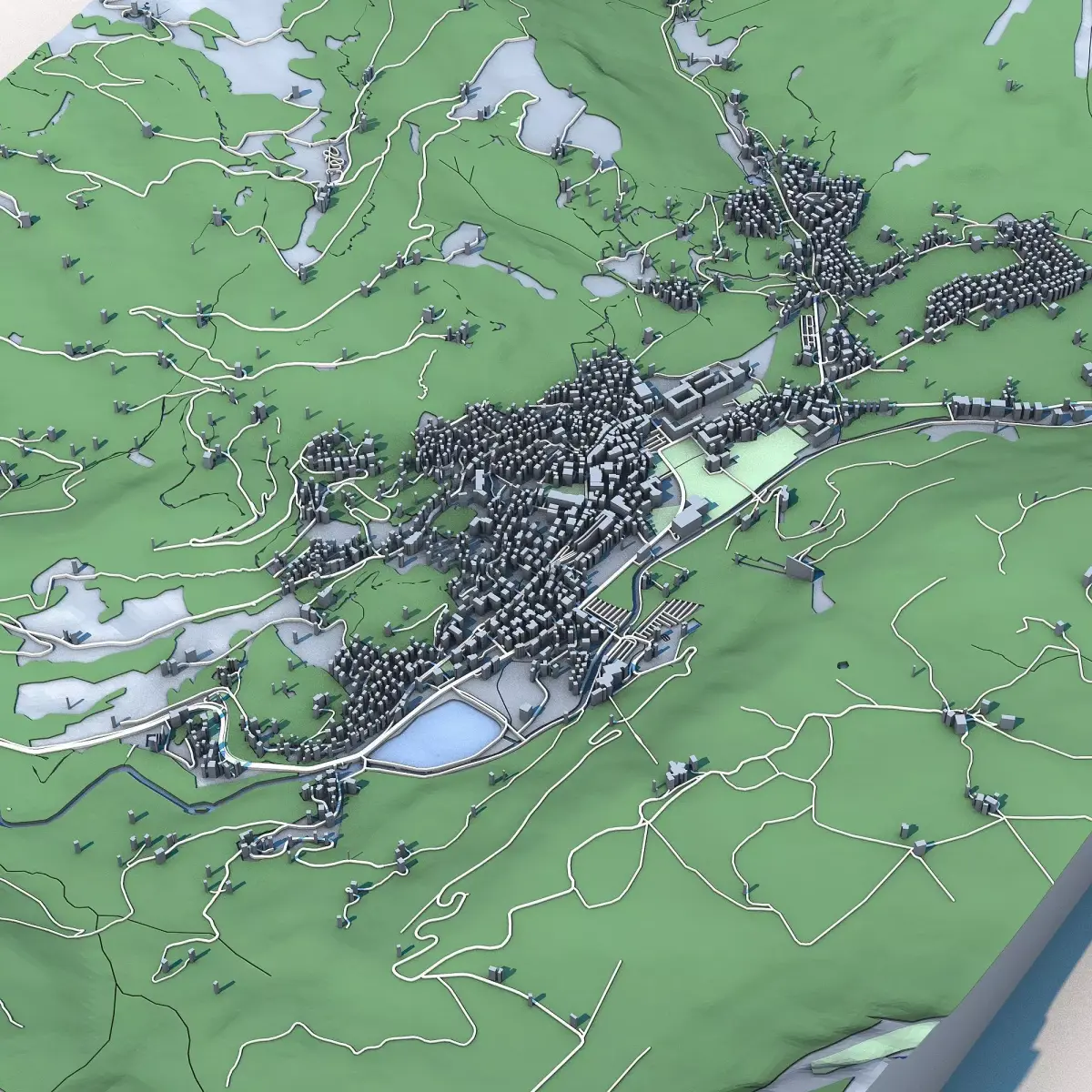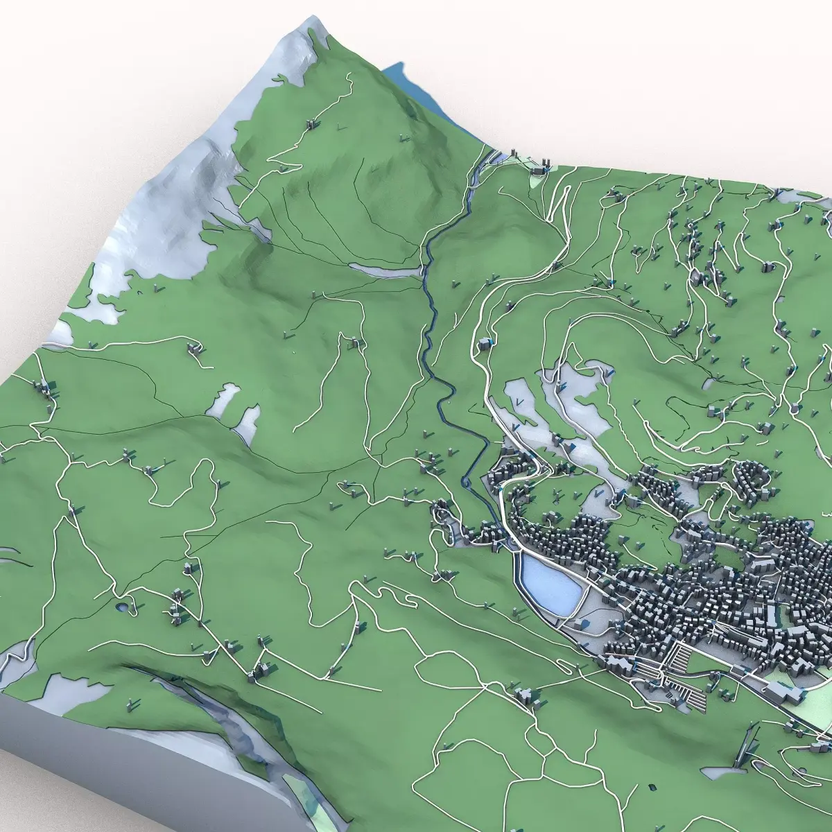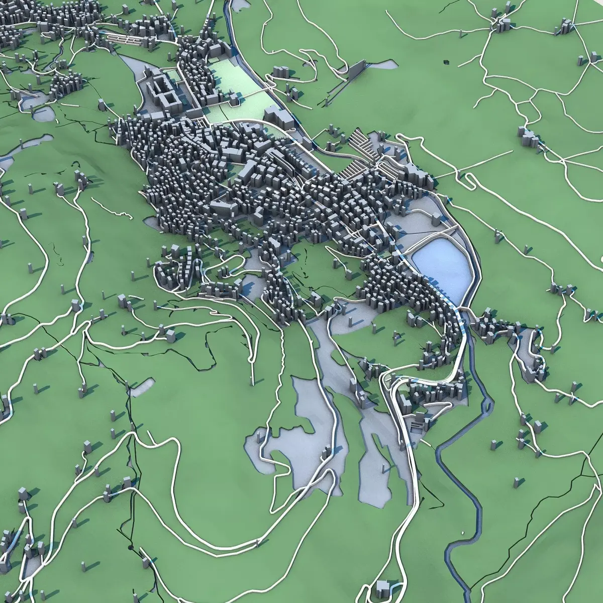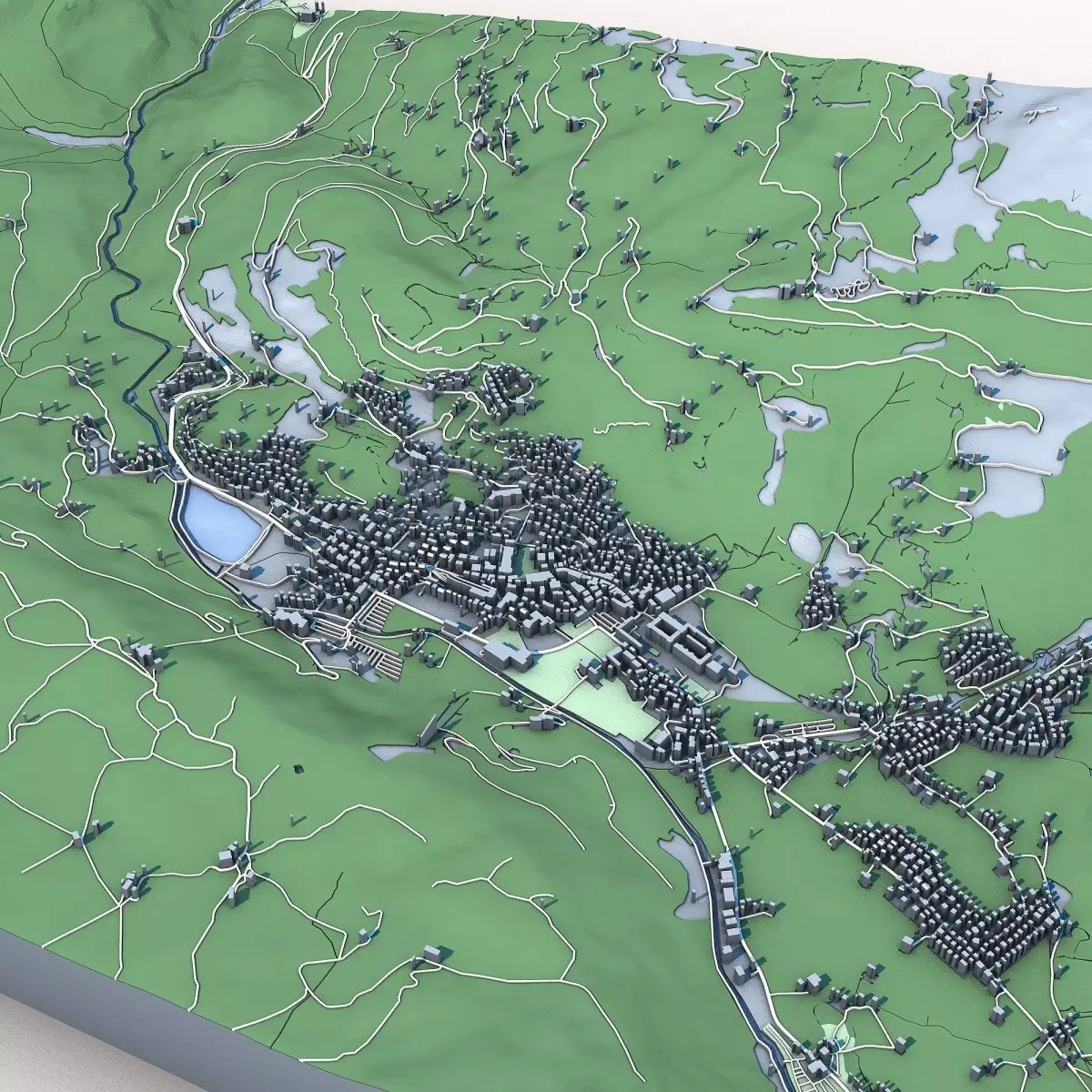 The .ZIP folder contains separate .STL files – buildings, water, vegetation, base etc.