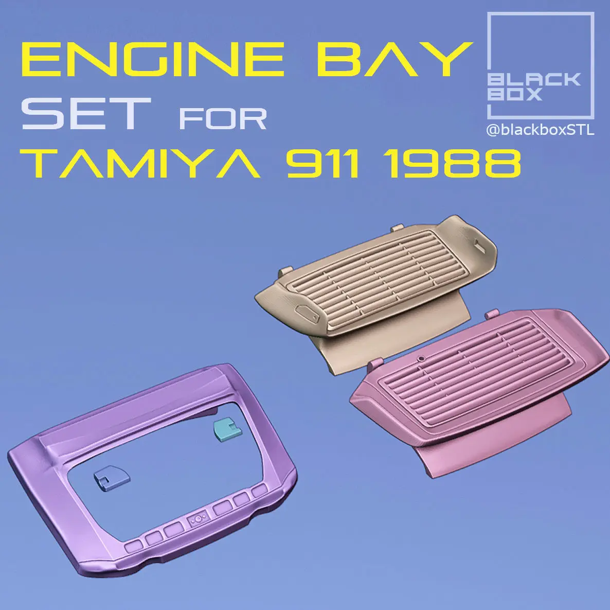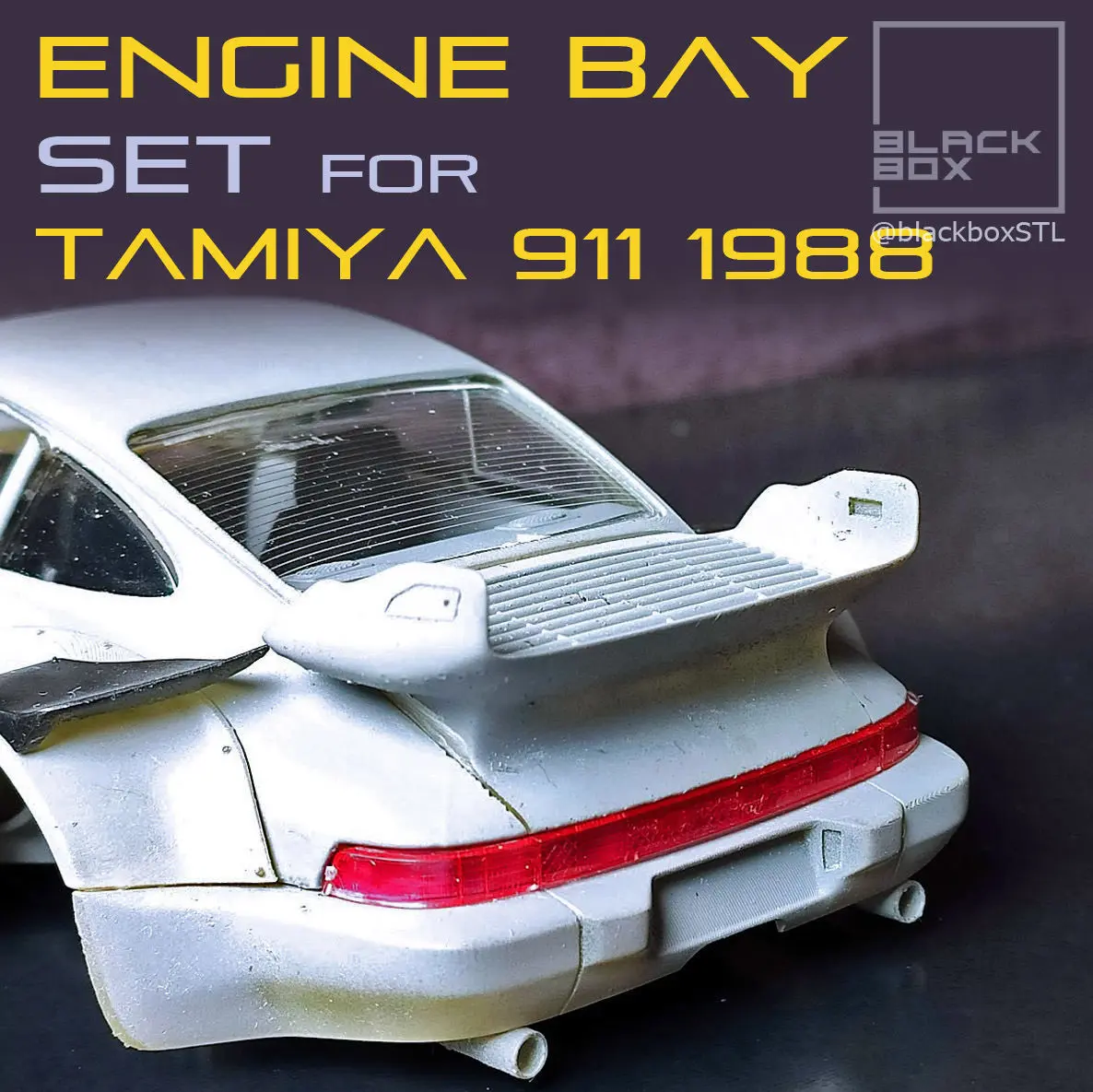 Openable Engine bay set compatible with tamiya 1988 Porsche Turbo 1/24th modelkit. Includes 2 engine cowl models.