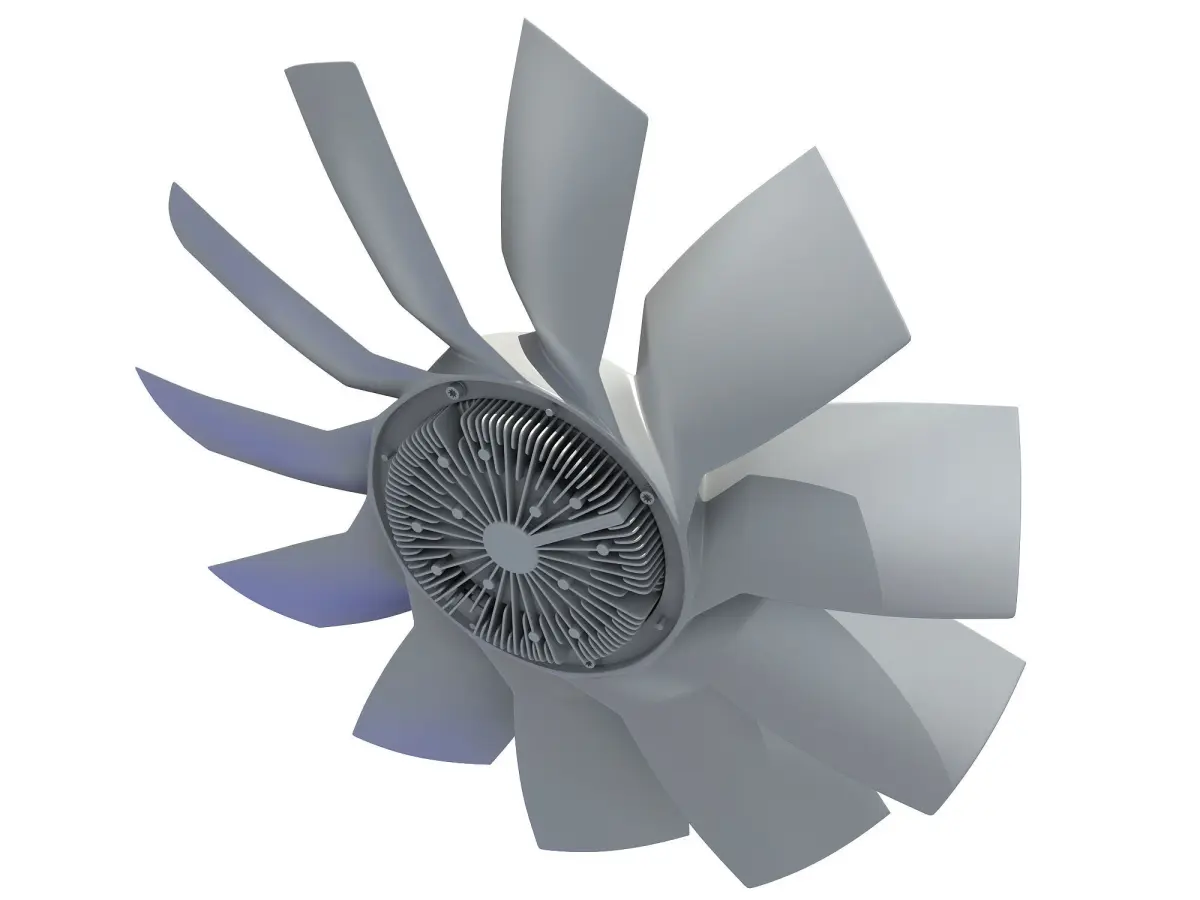 Detailed 3d model of car engine cooling fan.