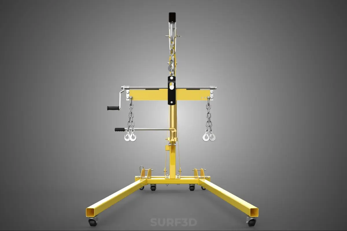 KEYWORDS: Engine crane, Engine hoist, Shop crane, Hydraulic crane, Folding crane, Lifting equipment, Material handling, Load lifting, Engine removal, Engine installation, Hydraulic lifting, Folding frame, Mobile crane, Boom crane, Jib crane, Engine leveler, Load balancer, Engine tilter, Load positioning, Automotive repair, Garage equipment, Workshop tools, Heavy lifting, Mechanical lifting, Hydraulic pump, Articulated boom, Caster wheels, Vehicle maintenance, Machinery lifting, Portability.
