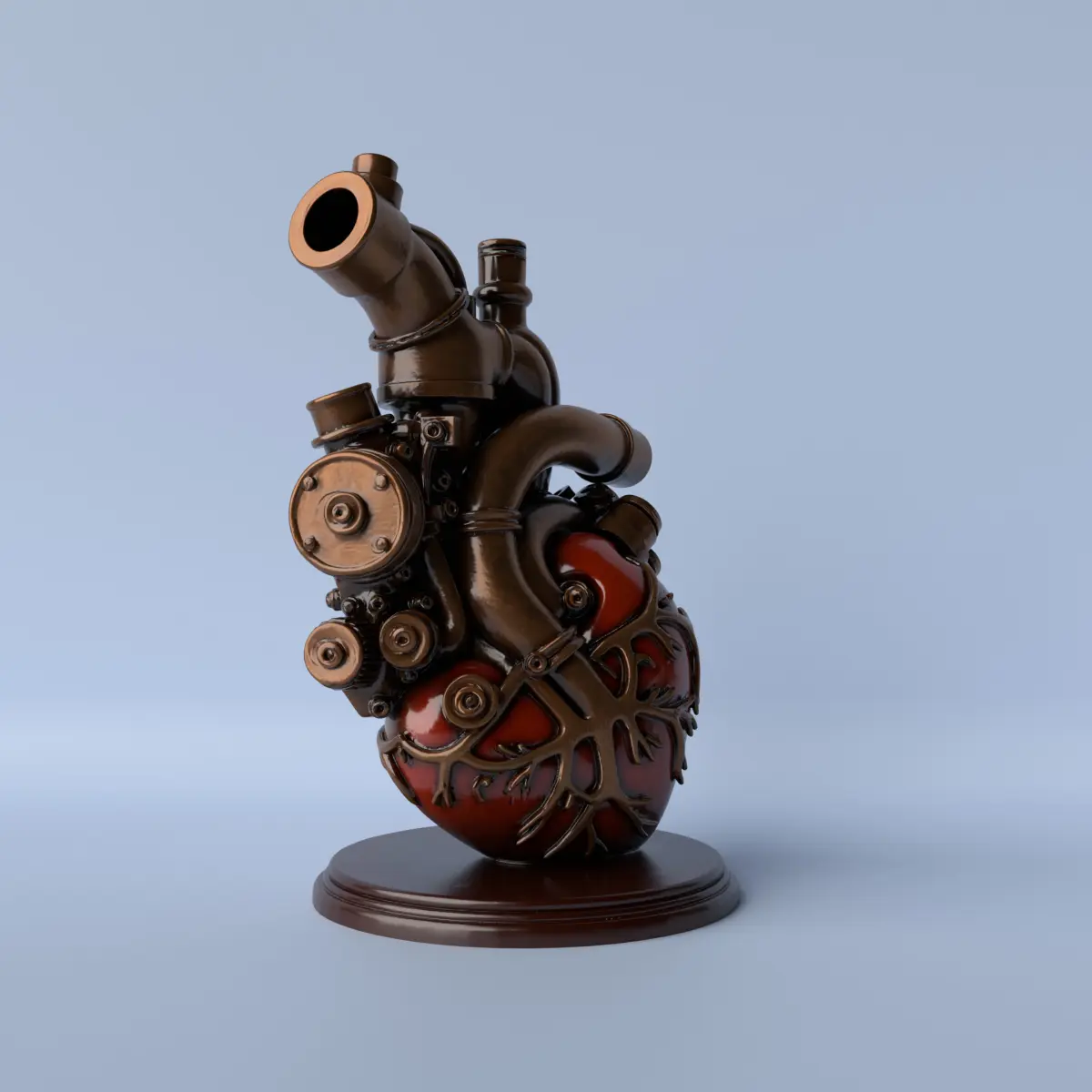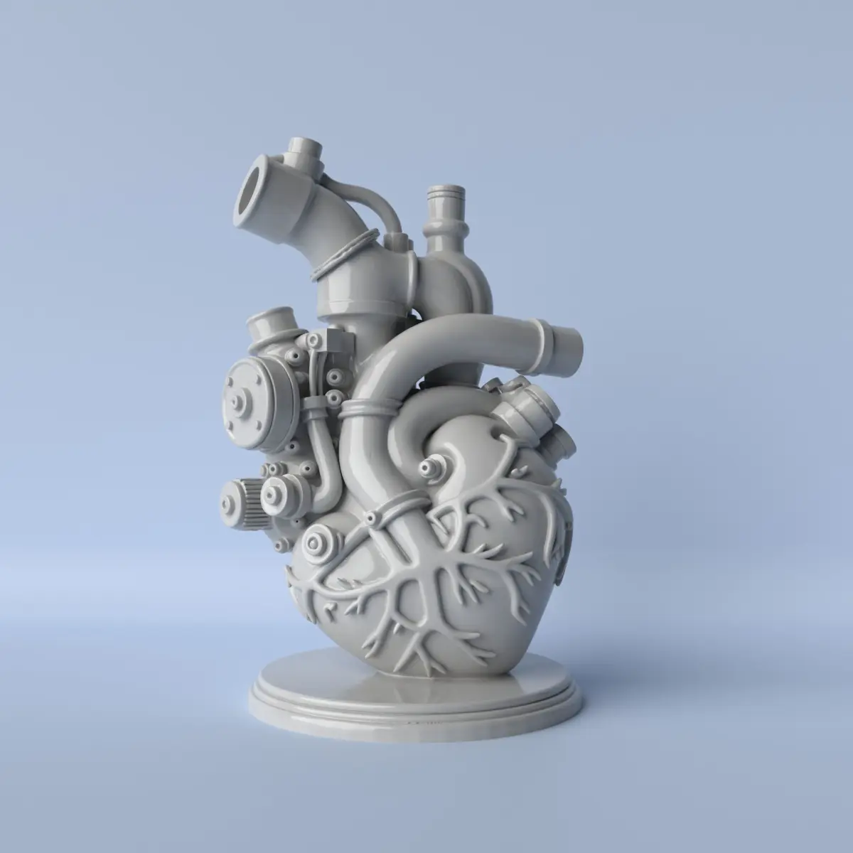 A unique 3D sculpture blending the shape of an anatomical heart with mechanical engine elements. Perfect for car and motorcycle enthusiasts, this design symbolizes passion for machines and speed. Pistons, gears, and exhaust lines are organically integrated into the heart’s structure, making it a bold decorative piece or gift. Eye-catching and optimized for 3D printing.