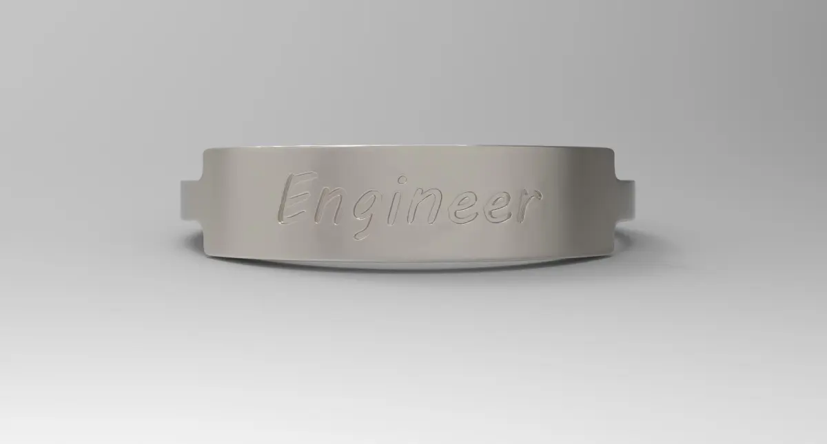 Ring Size:-Diameter = 22mm, Thickness = 1.5mm, Height = 5mm, Taper Height = 2mm to 5mm and Text Depth = 0.2mm.