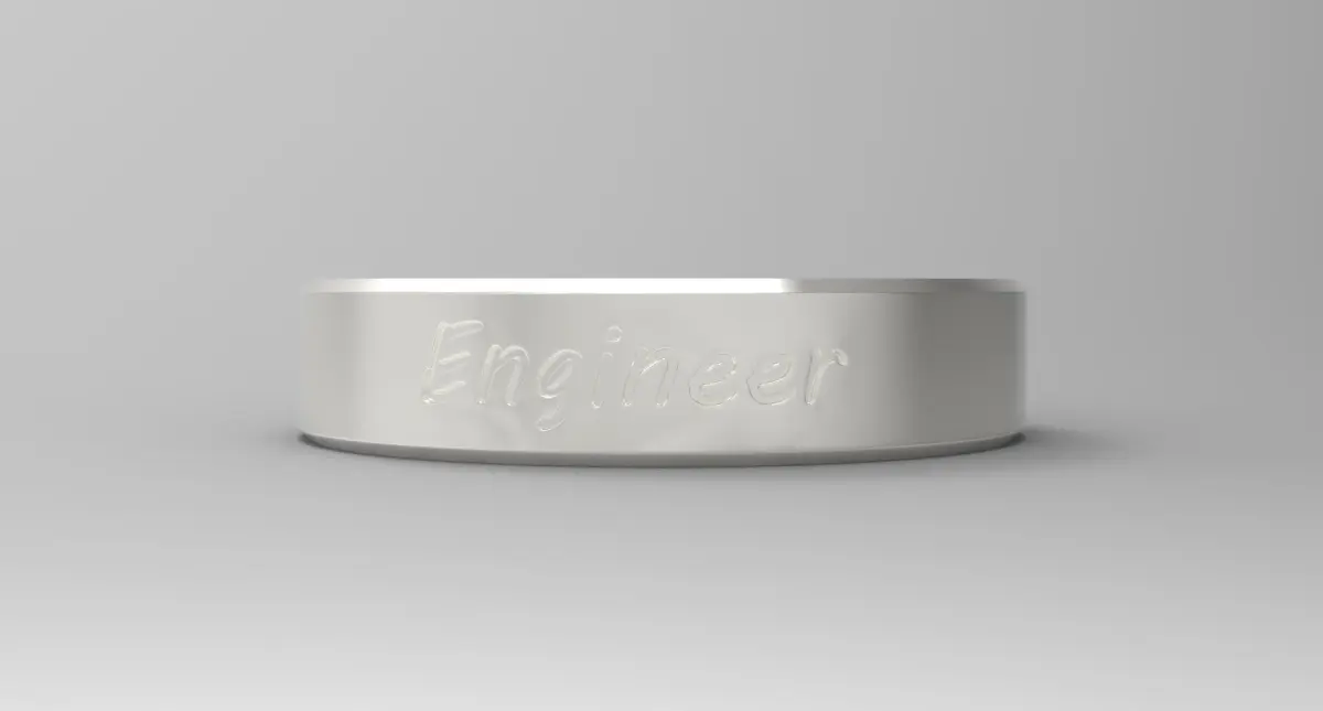 Ring Size:-Diameter = 22mm, Thickness = 1.5mm, Height = 5mm and Text Depth = 0.2mm.