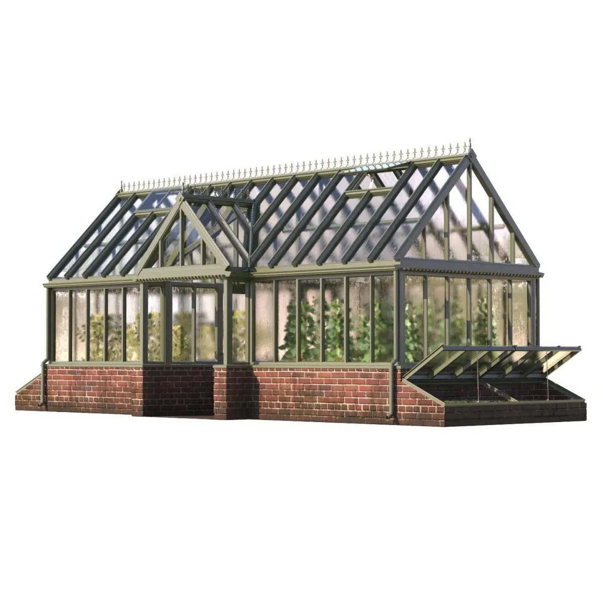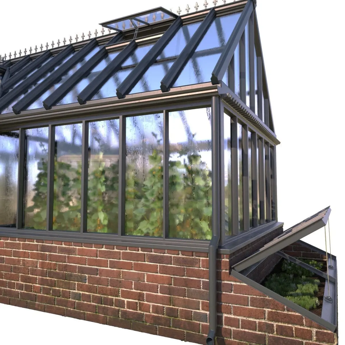 Glass greenhouse with aluminum profile, English style. Frame paint color can be easily changed in sub-mat#3/color_mix.