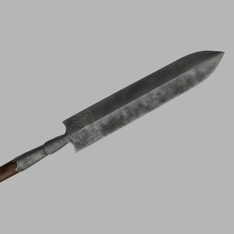 Old worn english polearm with engraved steel head and wooden handle. It is a low polygon count model so it is suitable for games or real time presentations but detailed enough for rendering too. Fully UVW mapped with diffuse, specular, gloss and bump maps.