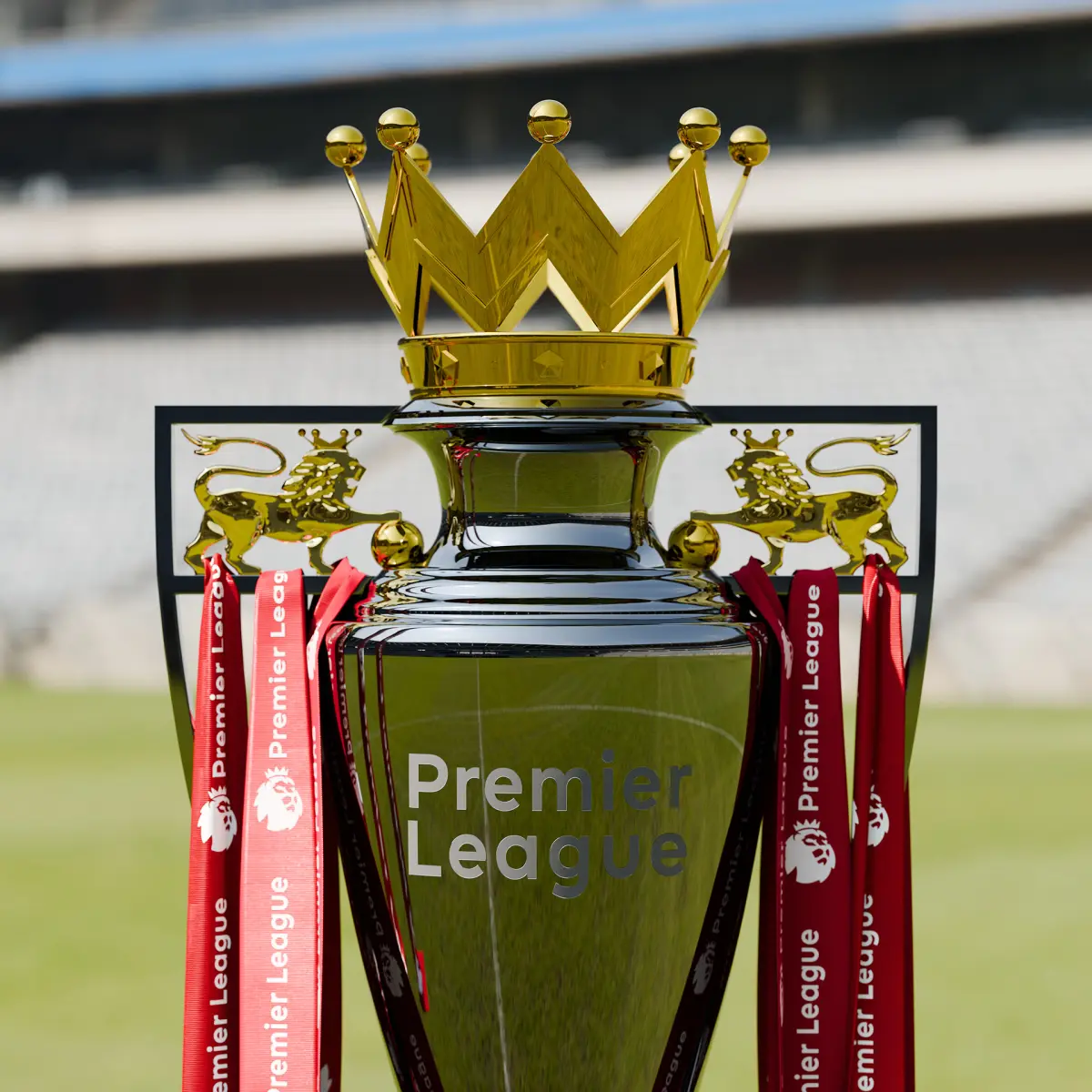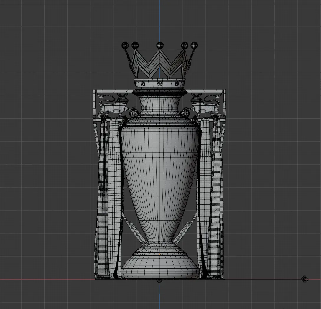 The English Premier League trophy has been accurately modeled to its real-life dimensions . The design includes detailed modeling of the lions , precise engraving of the Premier League text on the front, and careful selection of the marble type and color tones to match the original trophy. High-quality materials and textures have been used to ensure realism, along with the championship ribbons from Liverpool’s title-winning season.