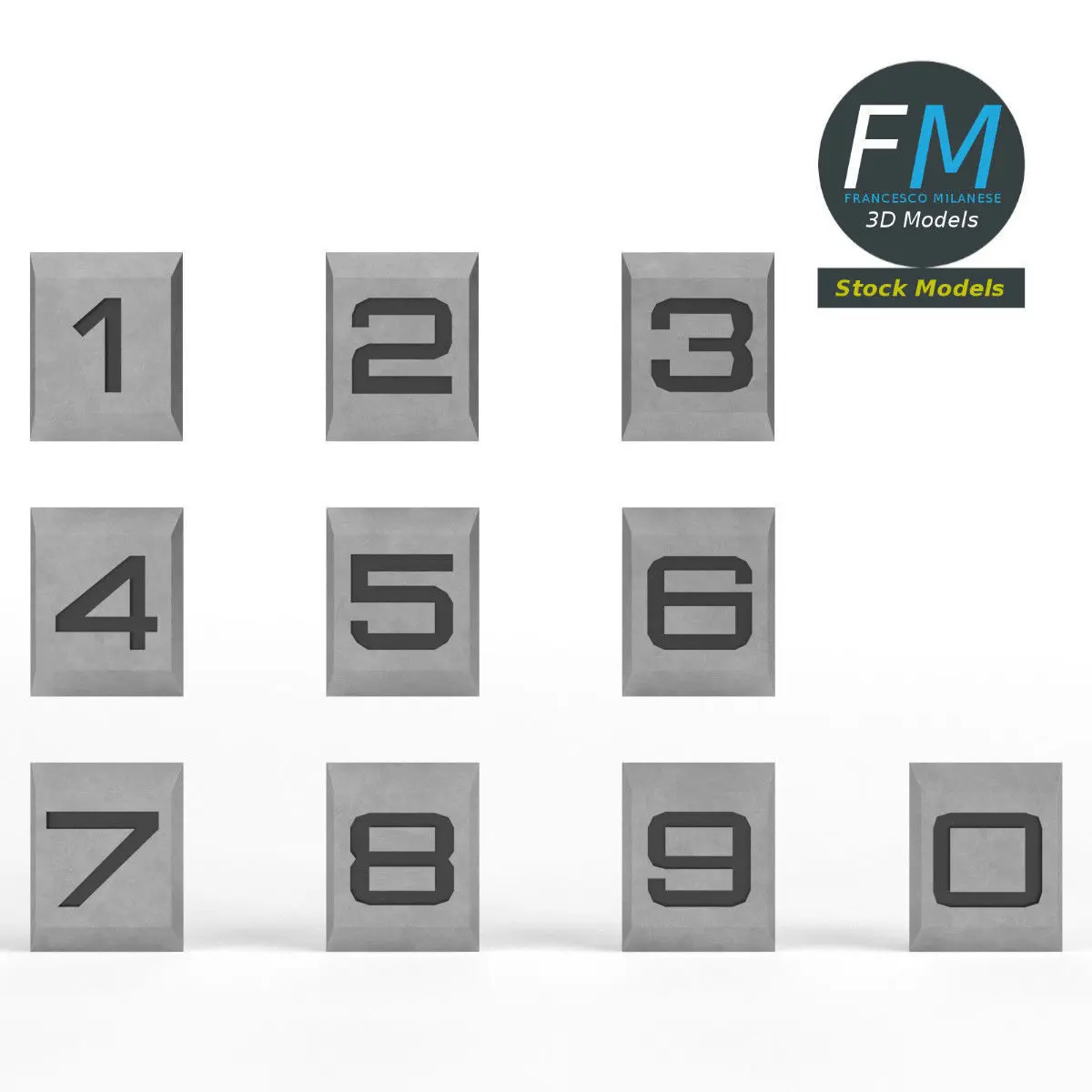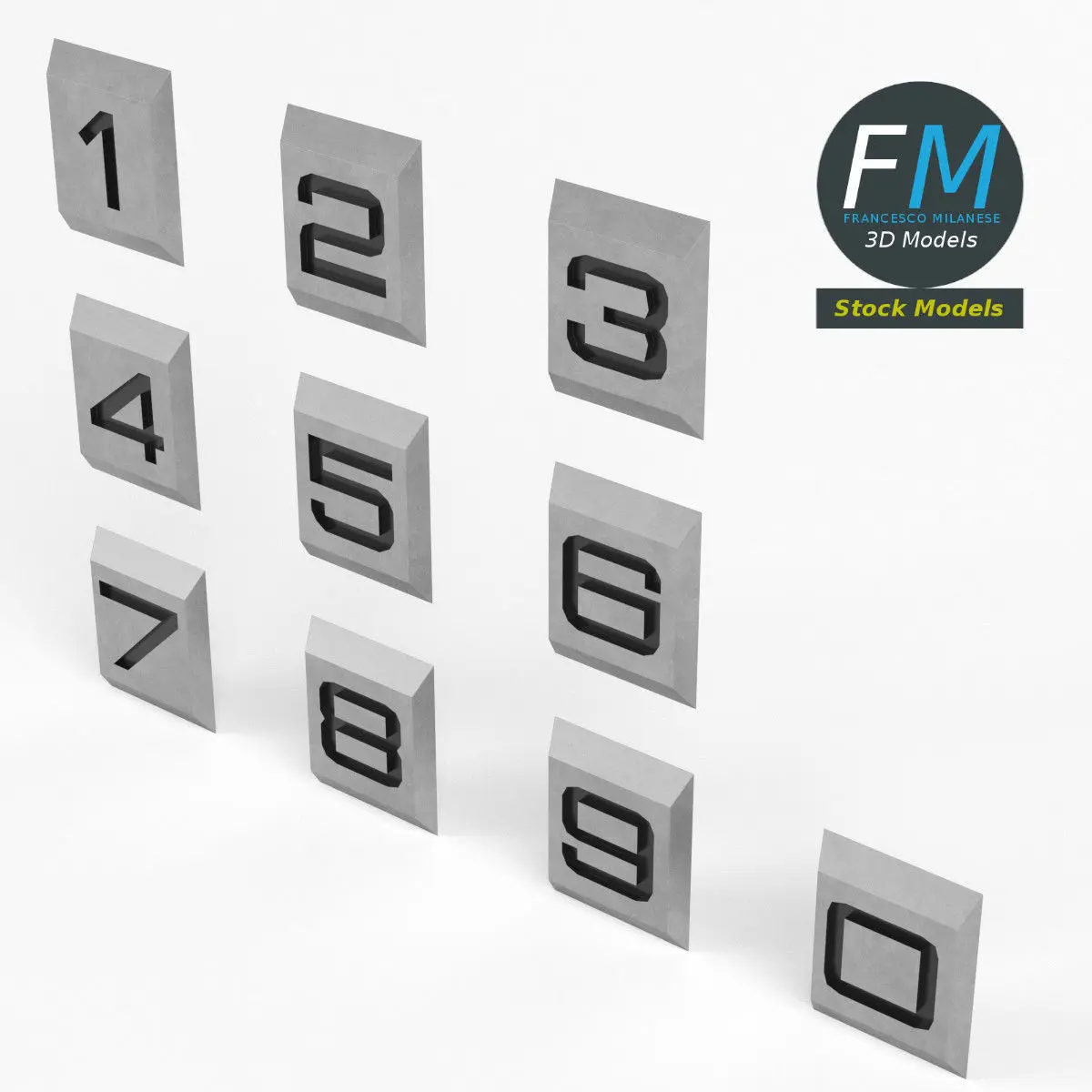 Engraved numbers 3D Model. Production-ready 3D Model, with PBR materials, textures, non overlapping UV Layout map provided in the package.