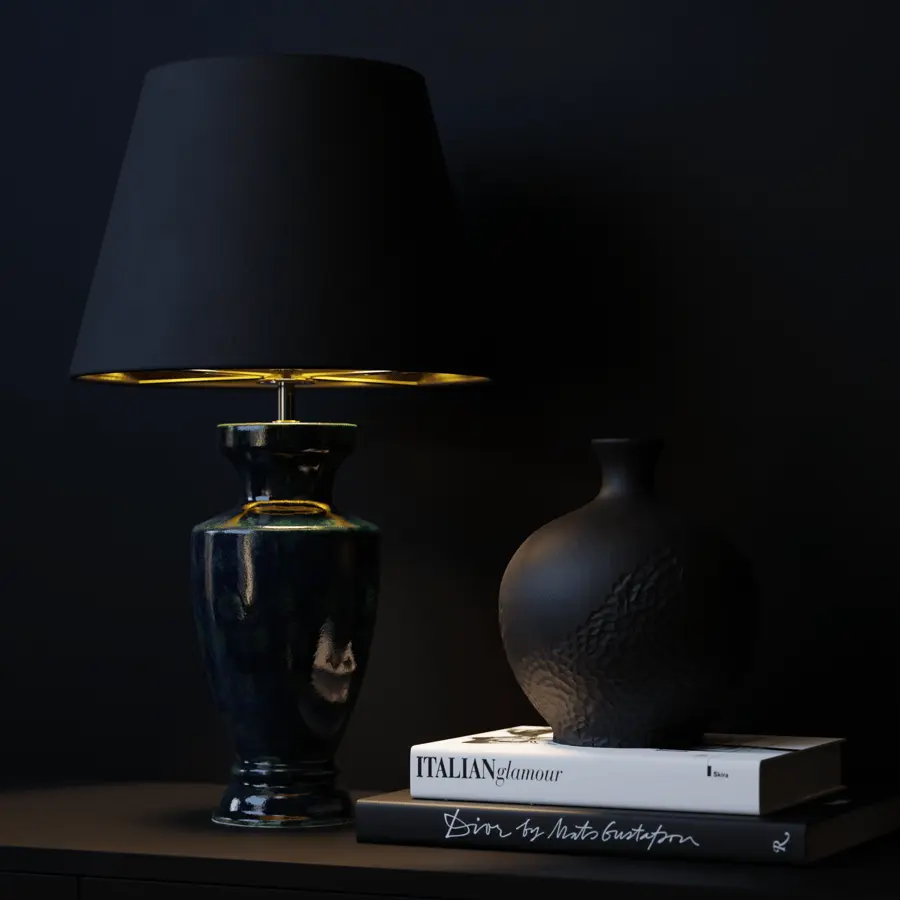 Eno Ceramic Arrius Granada Shade Lamp Model, Black
