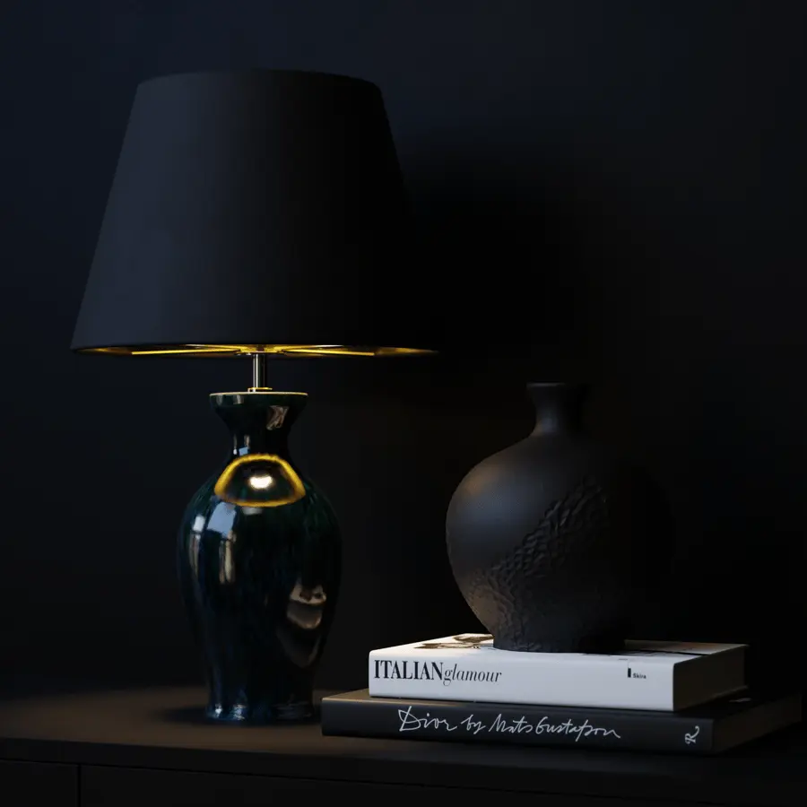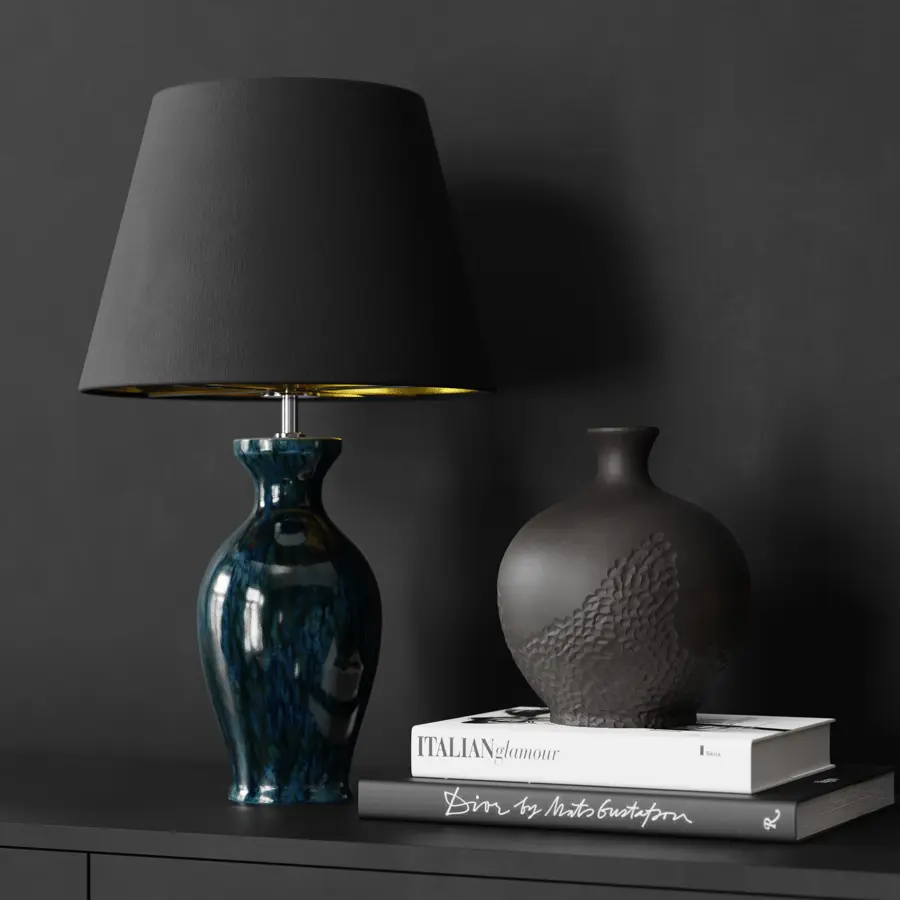 Eno Ceramic Danteur Peacock Shade Lamp Model, Black