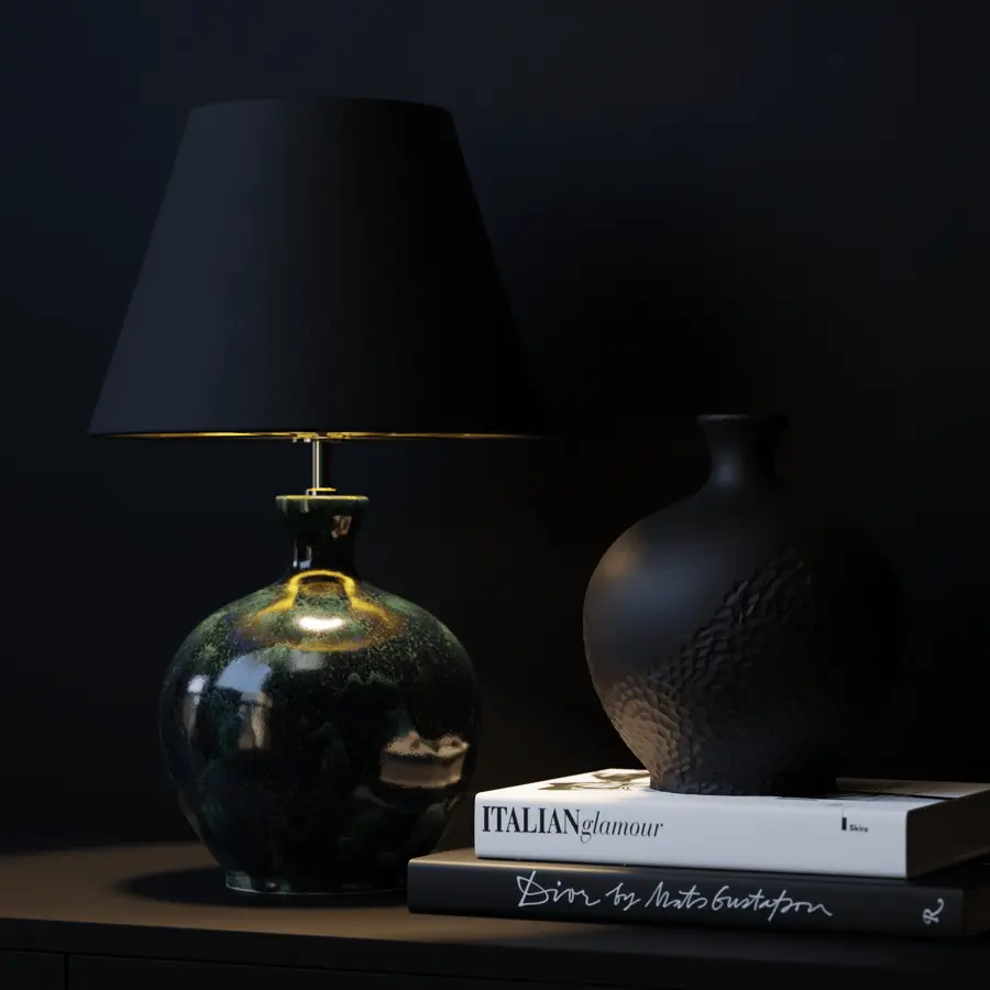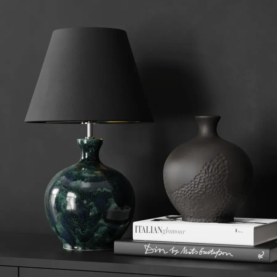 Eno Ceramic Olive Granada Shade Lamp Model, Green