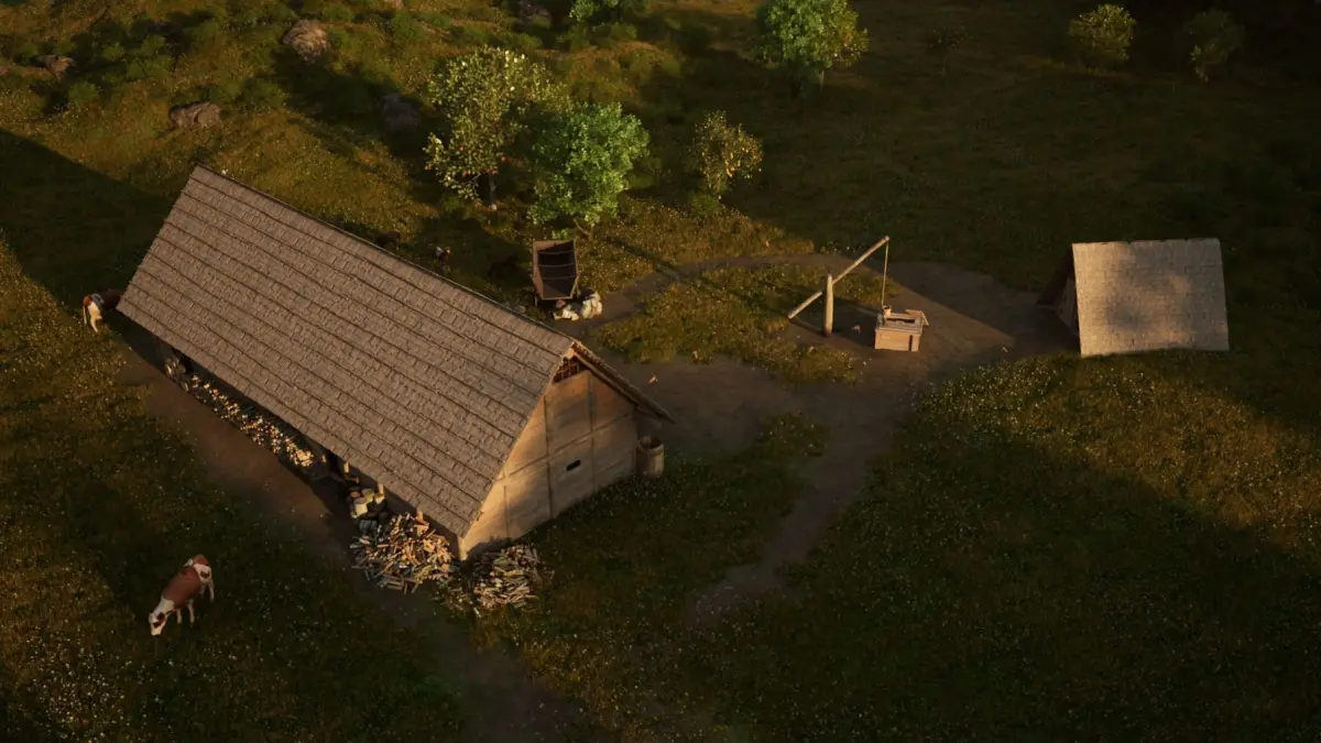 Low-poly historical reconstruction of a medieval byre-dwelling. A combination of living quarters for humans and stables for their livestock / animals. This style of building was very common from the bronze age onwards up to the high middle ages. Even so the material and techniques used have changed, variants of this building concept still survived until today in Germany, England and other parts of Europe. The style portrayed here resembles the standard early medieval or dark age farmhouse.