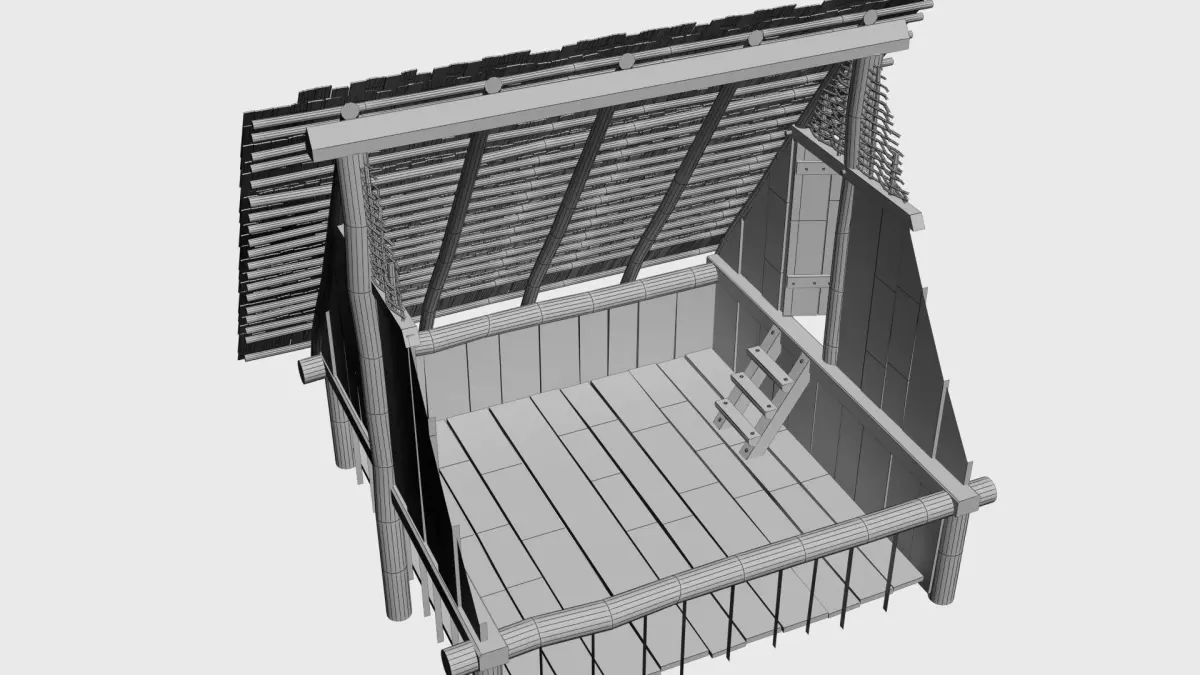 Low-poly historical reconstruction of a medieval pit house, grubhut, grubhouse or Grubenhaus. This kind of building was pretty common between the 5th and 12th century. Their use may have varied, especially on a regional basis. In Western Europe their small size and the fact that they can be found near other buildings and associated finds of loom weights has led to theories that they had a specialized purpose such as for weaving sheds. In the Slavonic regions of Eastern Europe, they often have a fireplace included.