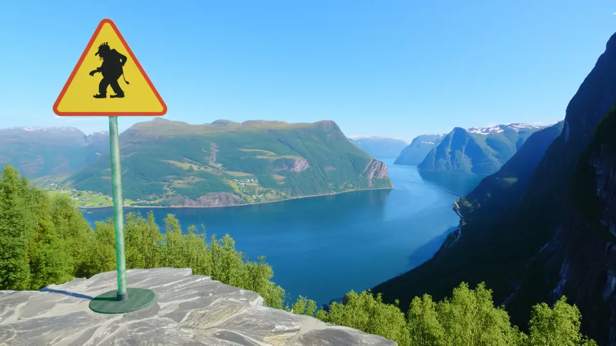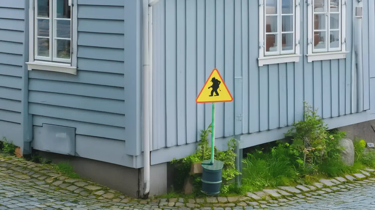 The sign features a bold black silhouette of a fictional creature or character, making it suitable for humorous, fantasy‑themed, or stylized environment design. The model is clean, lightweight, and optimized for real‑time applications such as games, simulations, VR/AR scenes, or architectural visualizations.